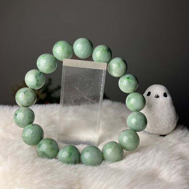 ☆ronchiko様専用となります☆ 他の方はご購入いただけません。 ◎自社研磨☆新潟県産/糸魚川圧砕翡翠 2Tランク 14mmブレス ¥59,202 ☆この度もライブ配信にお付き合いくださり誠にありがとうございました♫原石から天然無処理でお作りした糸魚川圧砕翡翠ブレスをご紹介でき光栄でした♡圧砕ならではの表情、そしてとろみ♡是非育ってゆく姿もお楽しみください♬ゴムを調整してお届けさせて頂きます♡この度も誠にありがとうございます♫ 専用商品となりますので明日2月1日(日)深夜1:15までにご注文お手続きをお願い致します。お時間が過ぎますとキャンセルとなりますので予めご了承くださいませ。