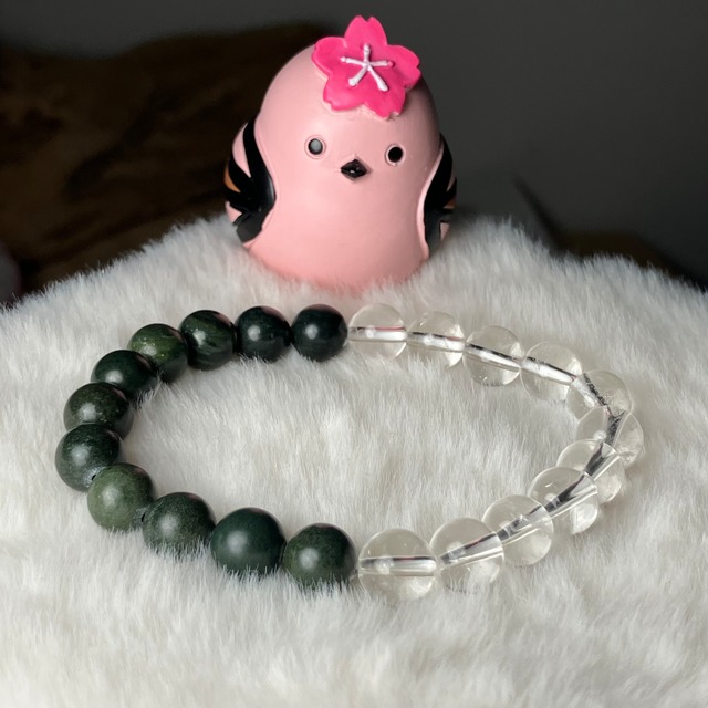 ☆mayuka様専用となります☆ 他の方はご購入いただけません。 ◎ハル作☆シンプルデザインブレス♡ ¥7,810 (自社研磨 日高町産/日高ヒスイ10mm&仕入れヒマラヤ水晶7mm) ☆この度もライブ配信にお付き合いくださり誠にありがとうございます♬シンプルだけど日高ヒスイが光るデザインブレスを覚えててくれてとっても嬉しかったです♡是非お持ちのブレスと重ねてつけたり、シンプルに1本でも♡お楽しみください♡サイズお直ししお届けさせていただきます☆この度も誠にありがとうございます♫ 専用商品となりますので明日3月12日(木)深夜0:59までにご注文お手続きをお願い致します。お時間が過ぎますとキャンセルとなりますので予めご了承くださいませ。