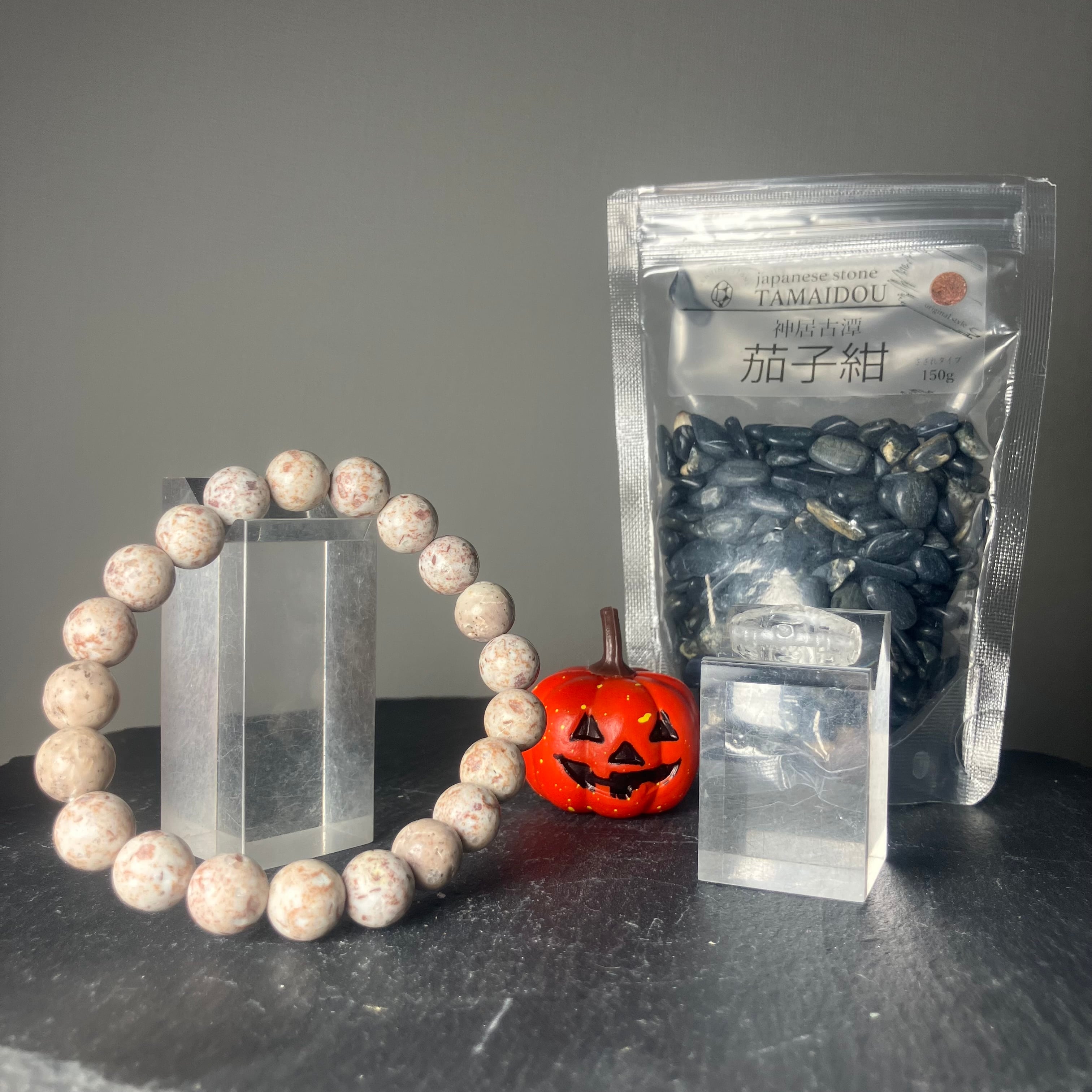 ☆この度もライブ配信にお付き合いくださり誠にありがとうございました♬キラッと輝くス◯モ(?)のようなビーズ入りの姫川薬石!そして茄子紺さざれと水晶の天珠をありがとうございます♡ぜひ薬石の育ち具合を楽しんでくださいね♡前回分と一緒にお届けさせていただきます♡この度も笑いと幸せを誠にありがとうございます☆チゲッ♡☆