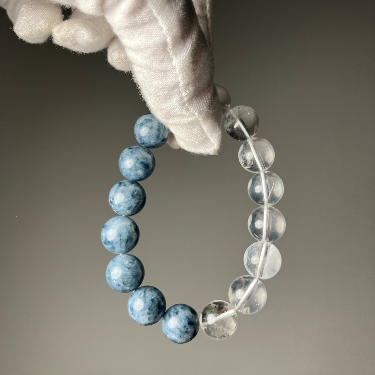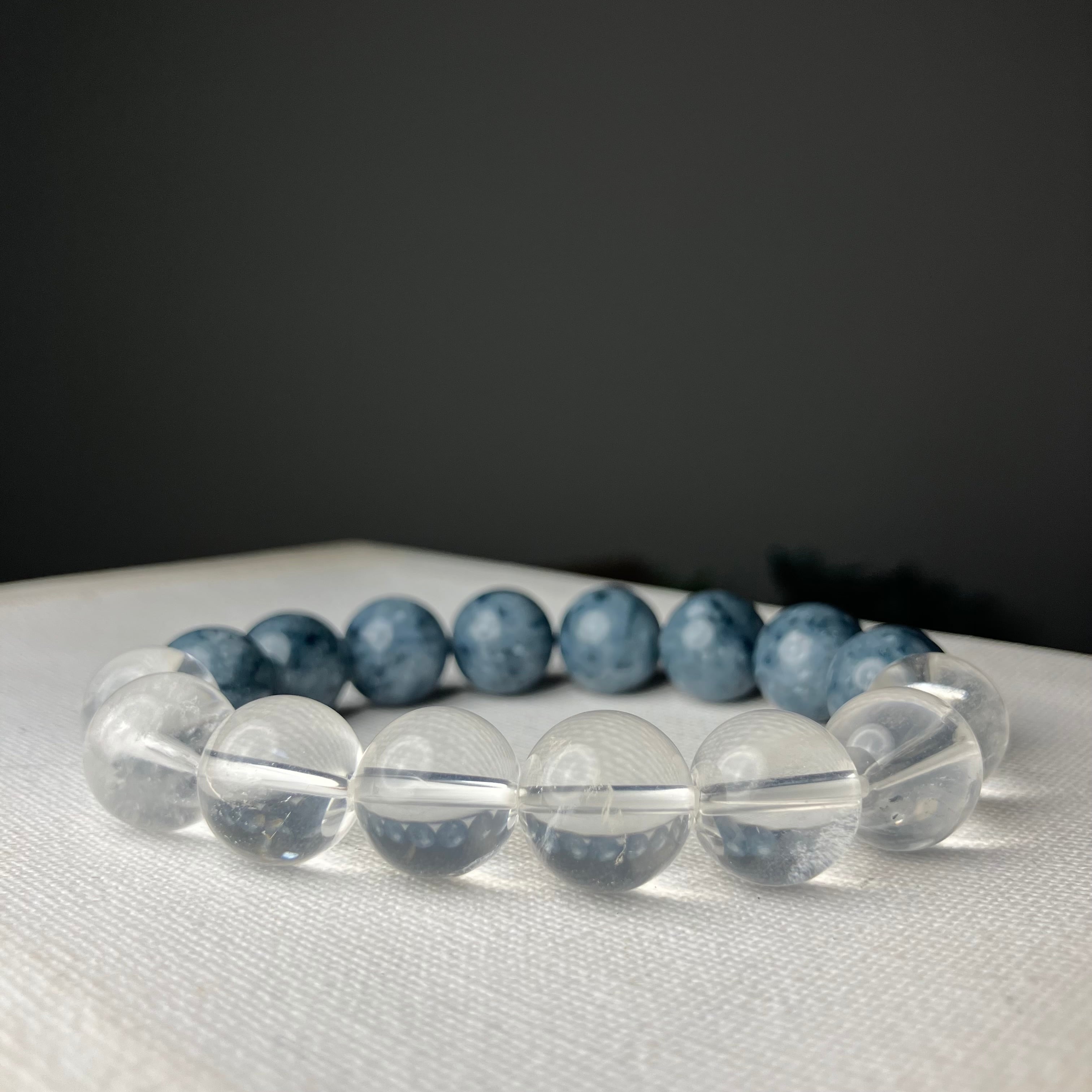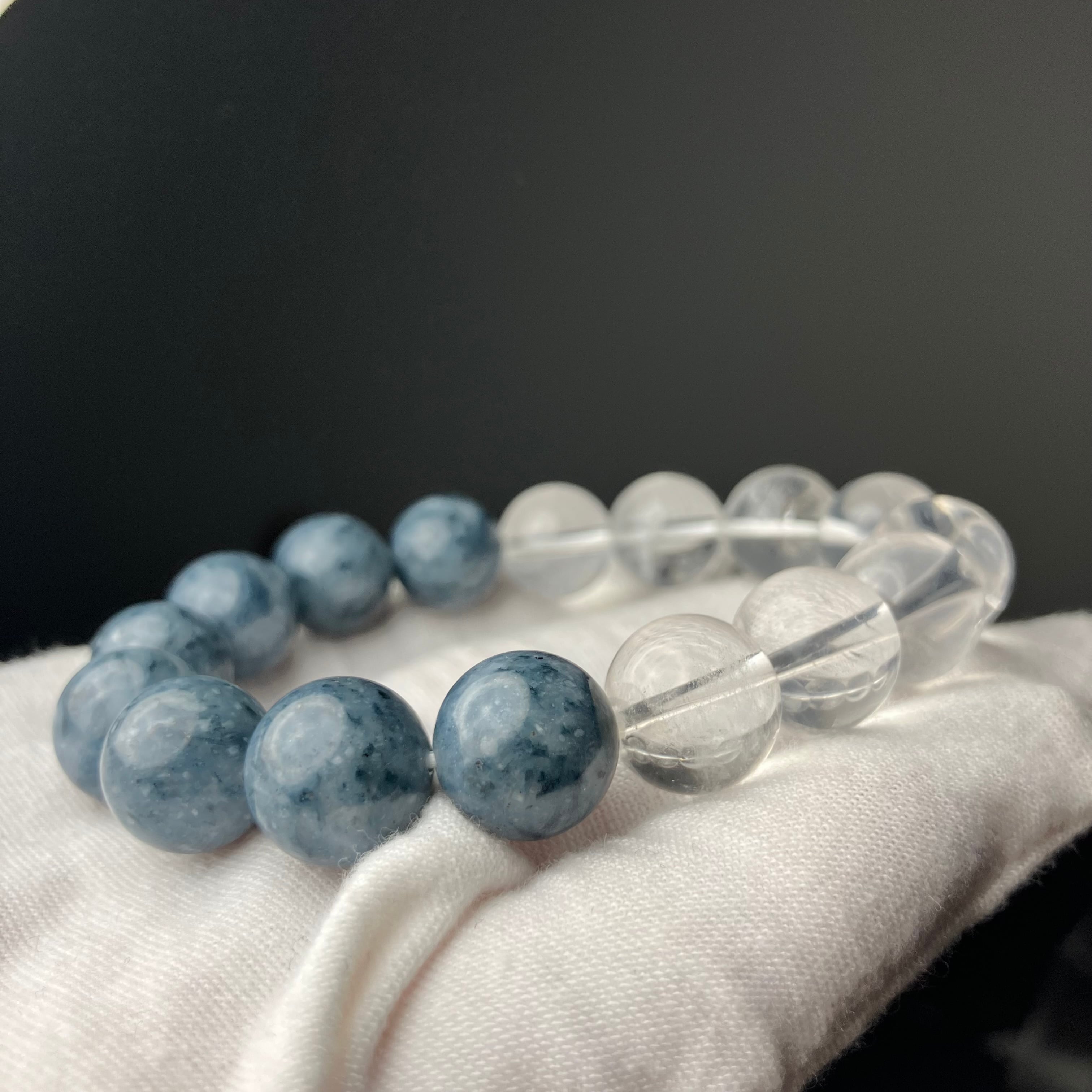 ◎ハル作☆自社研磨!平取町産/サトリアイト&仕入れ水晶 ハーフデザイン12mmブレス ¥37,480