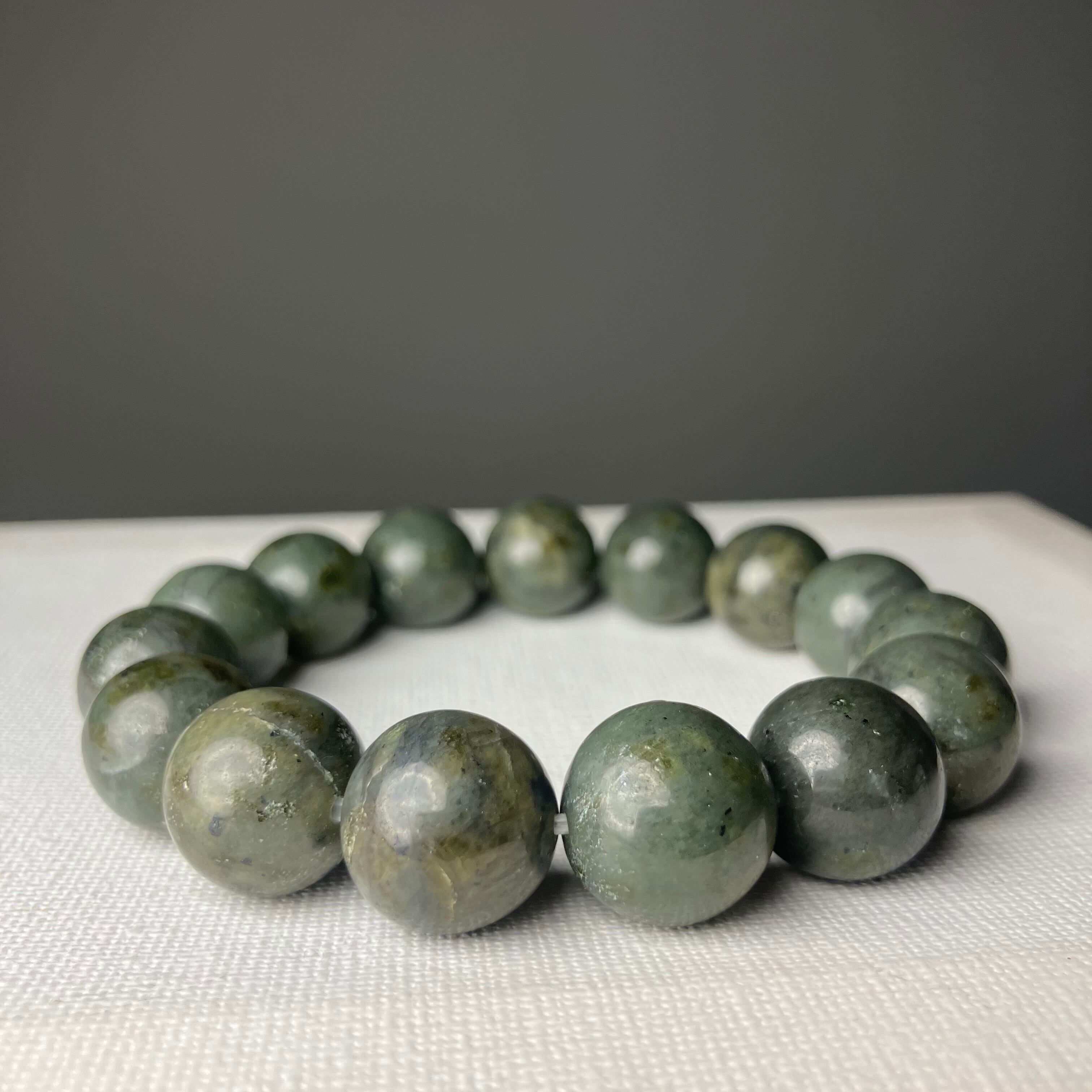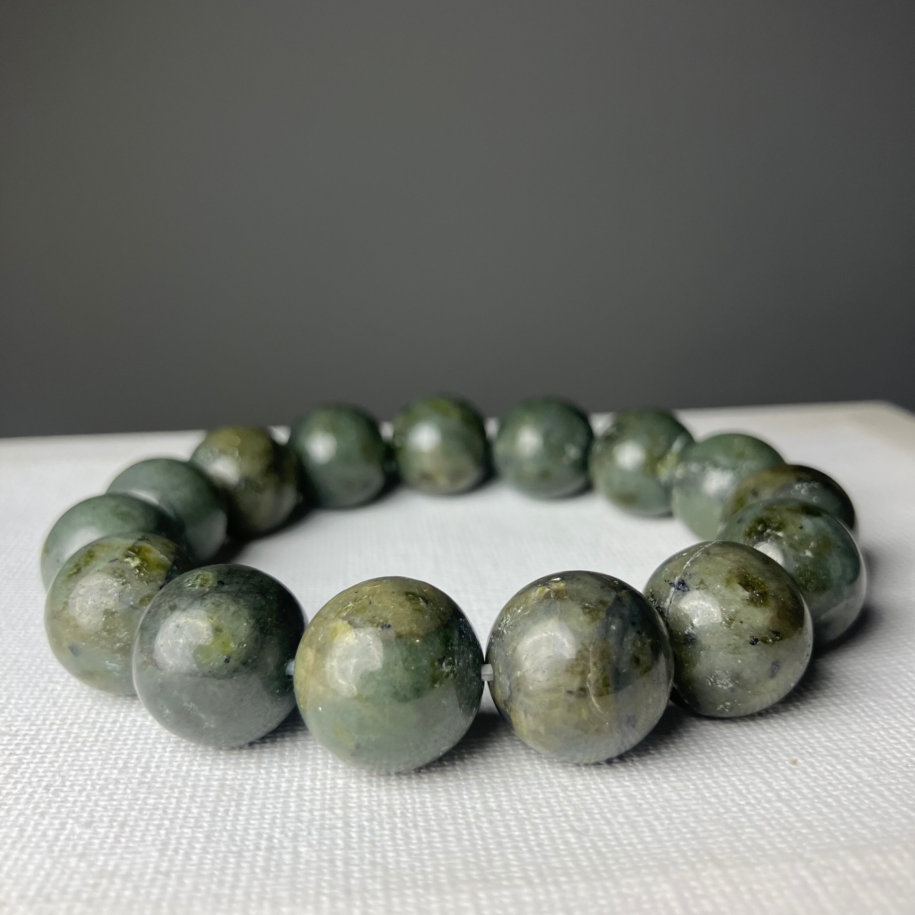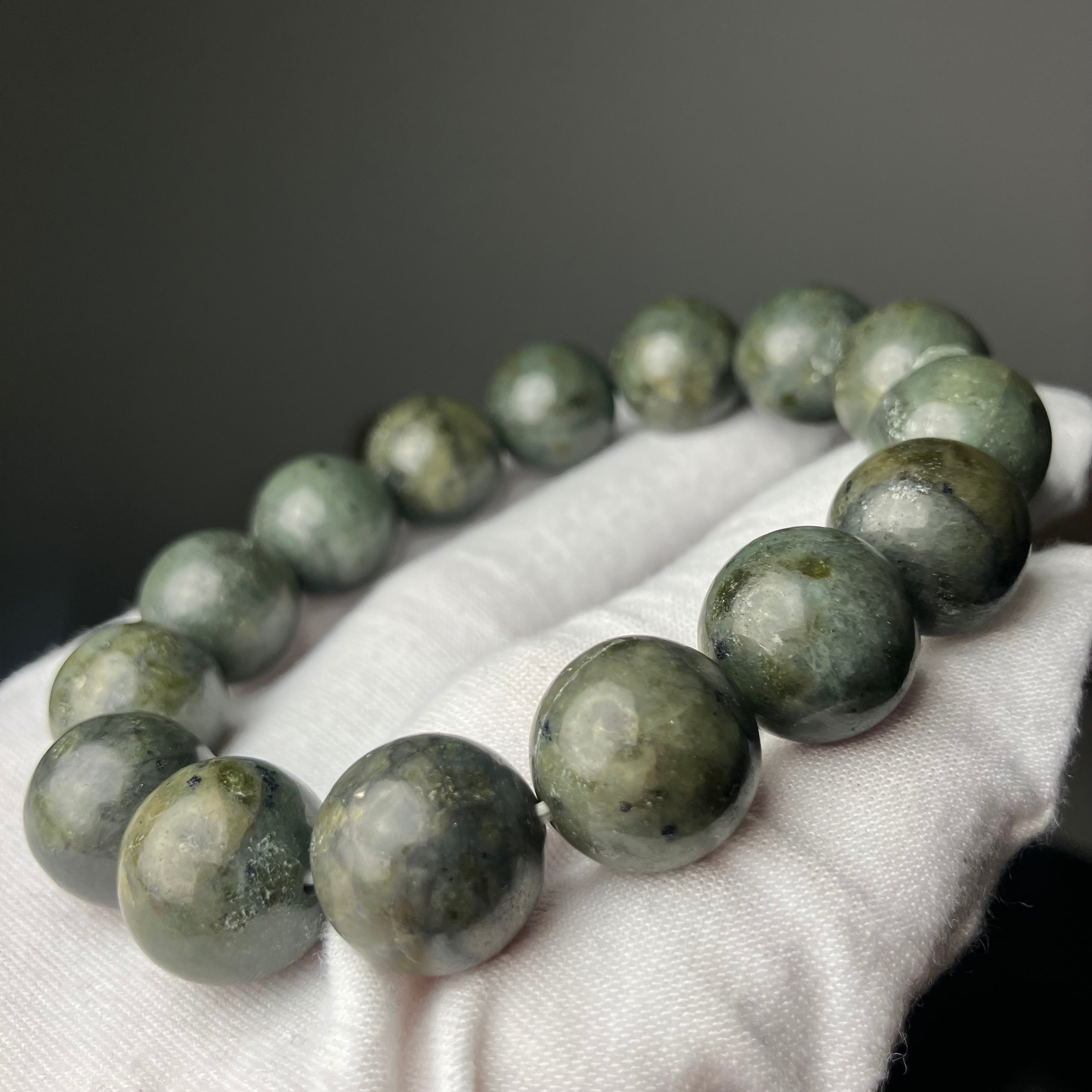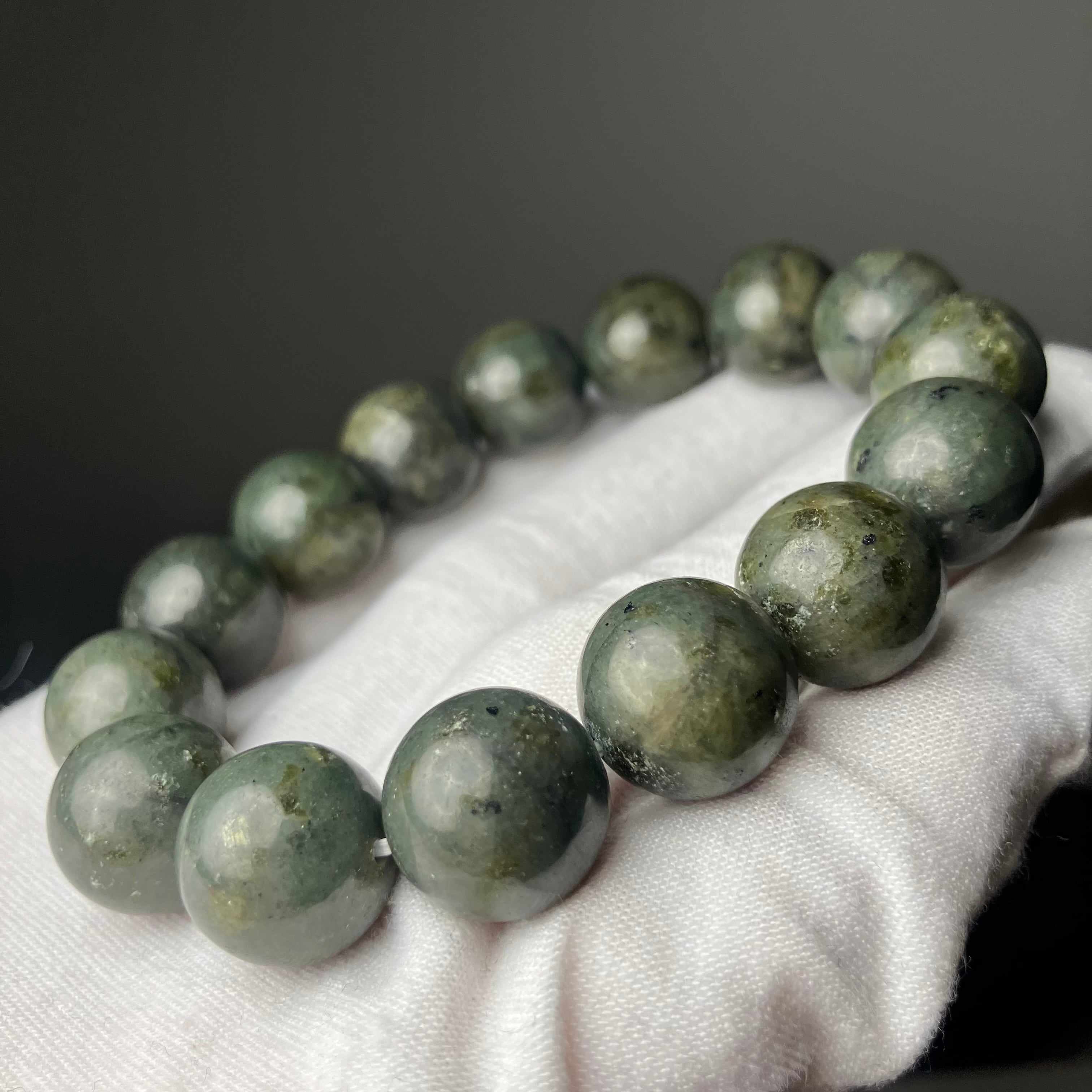 ◎自社研磨☆様似町産/橄欖岩 2Tランク 14mmブレス ¥25,426