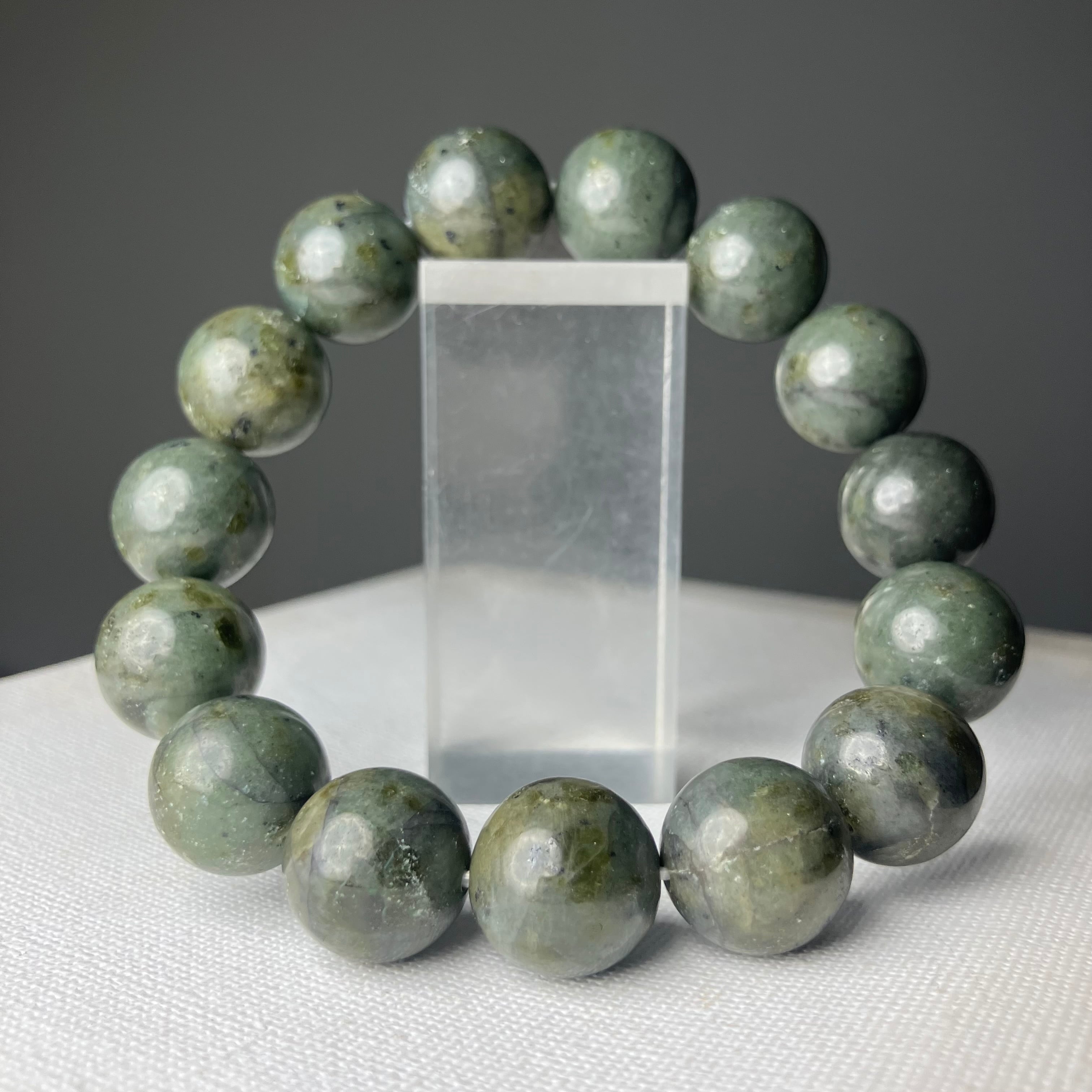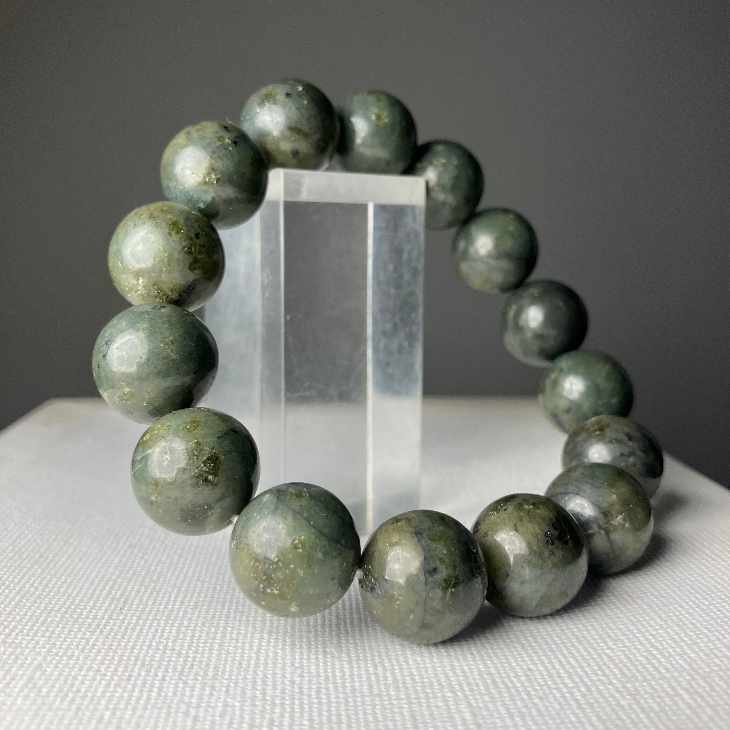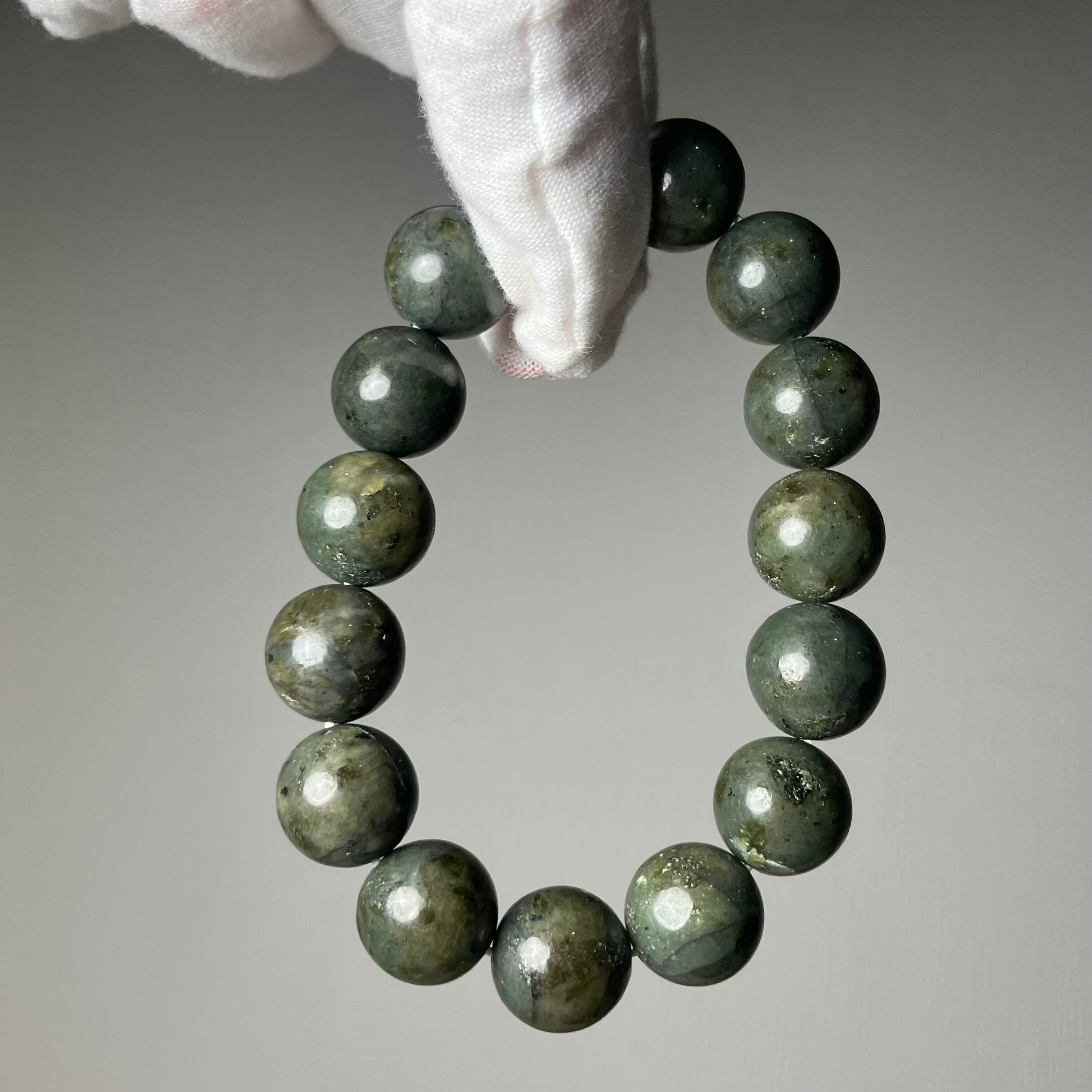 ◎自社研磨☆様似町産/橄欖岩 2Tランク 14mmブレス ¥25,426