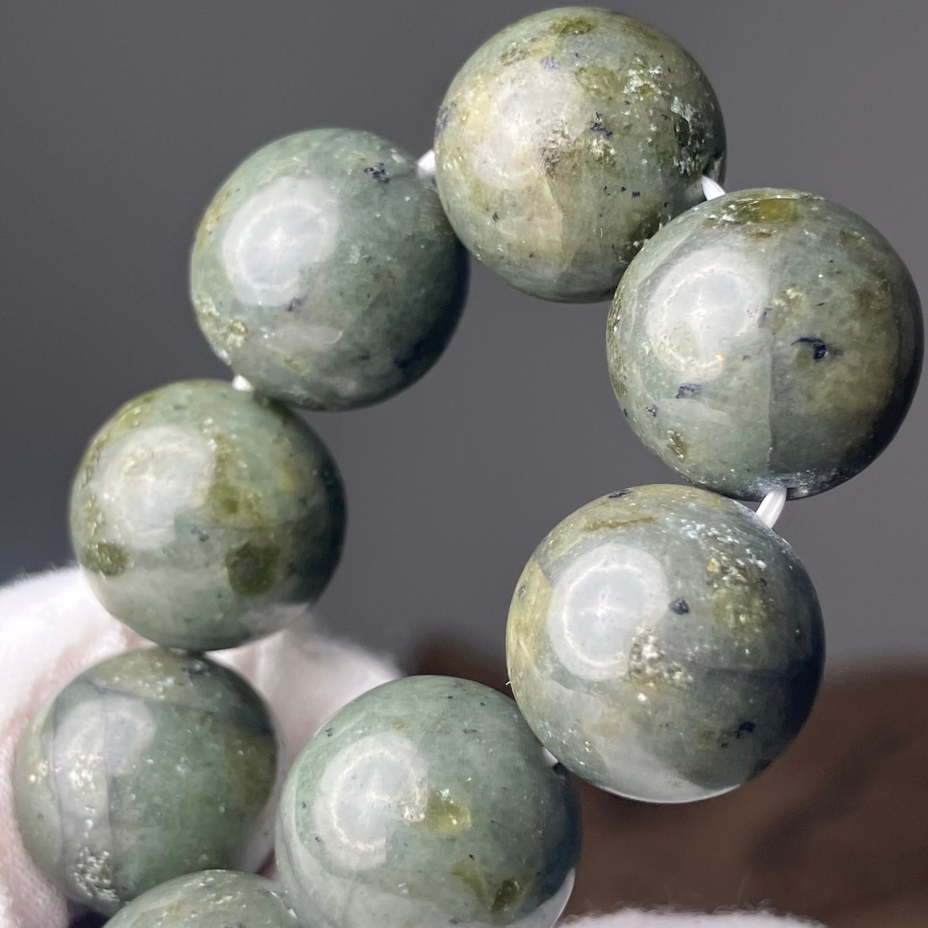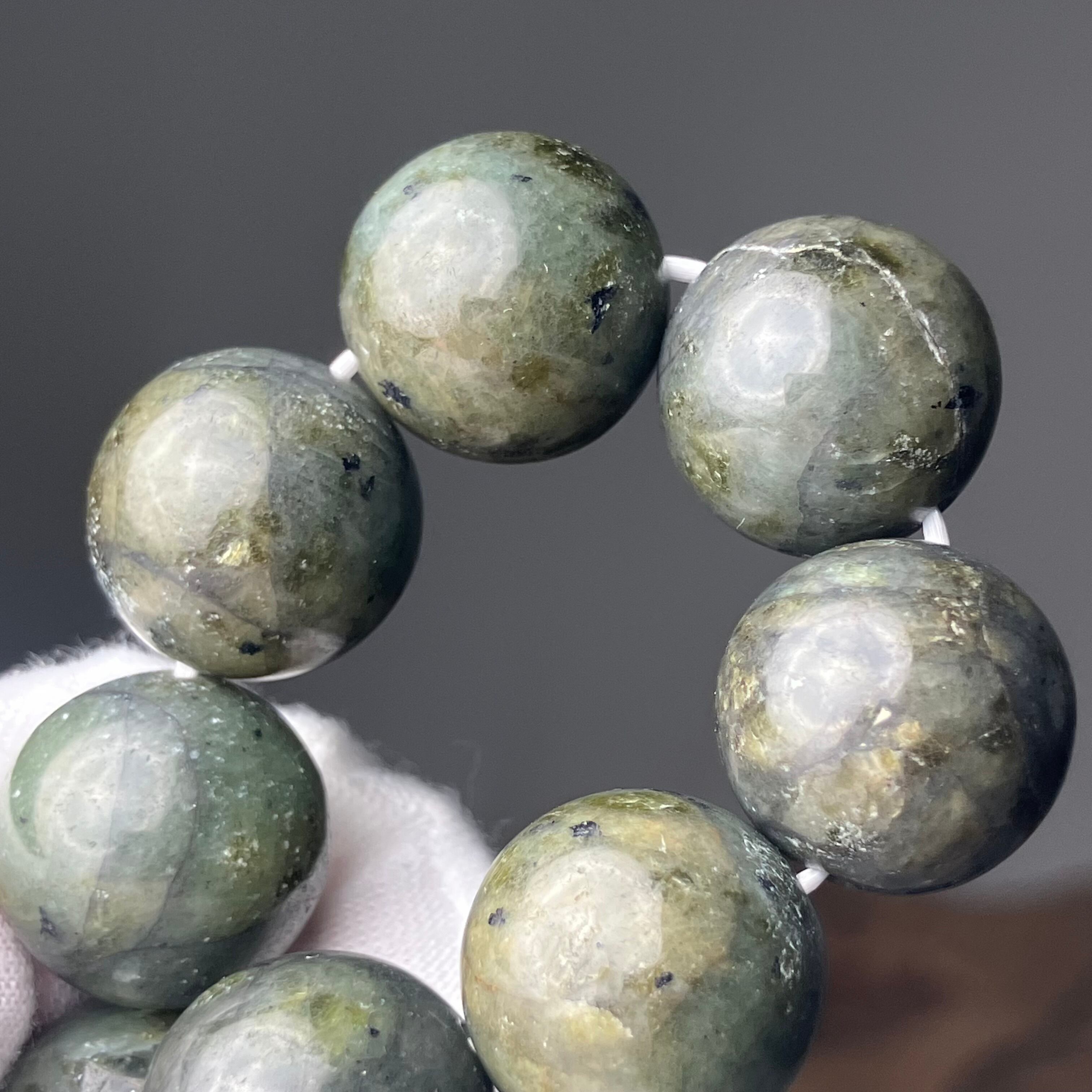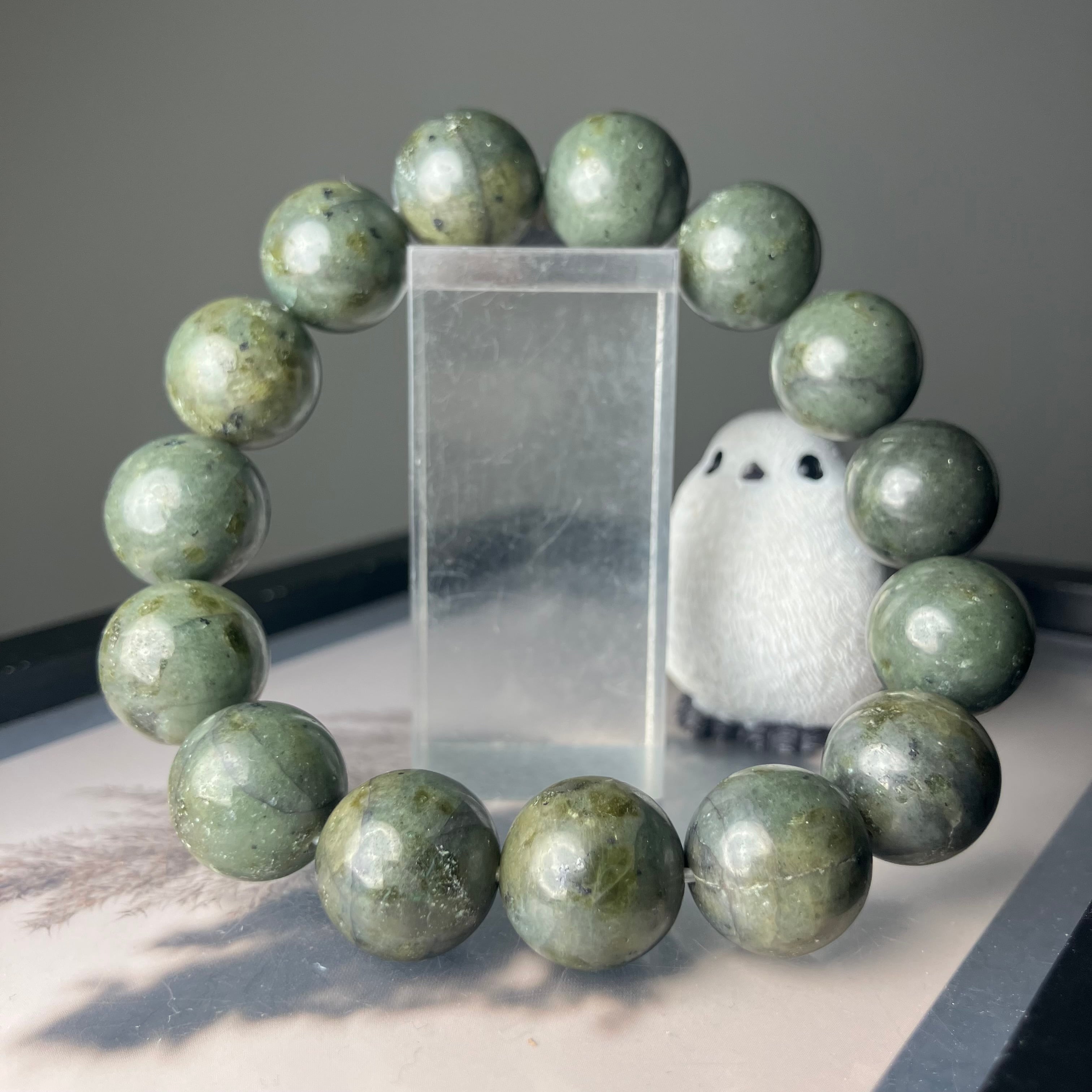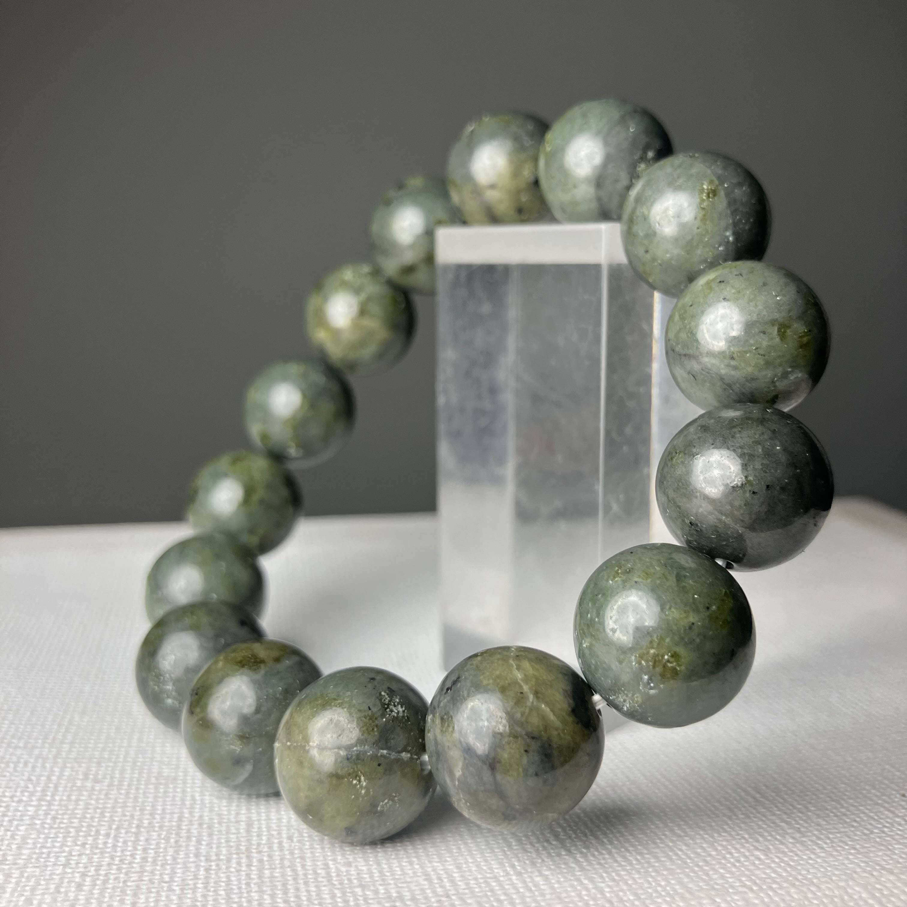 ◎自社研磨☆様似町産/橄欖岩 2Tランク 14mmブレス ¥25,426
