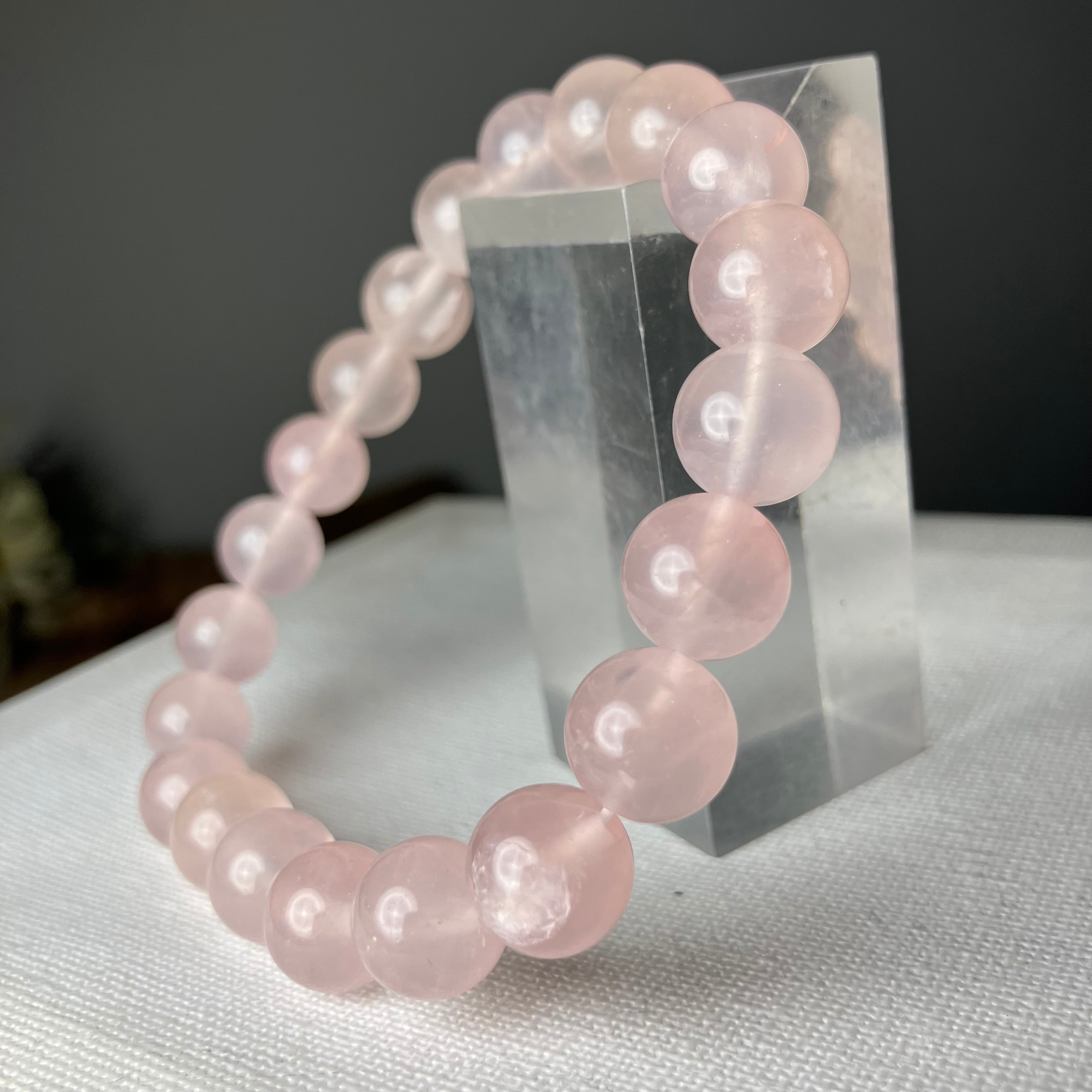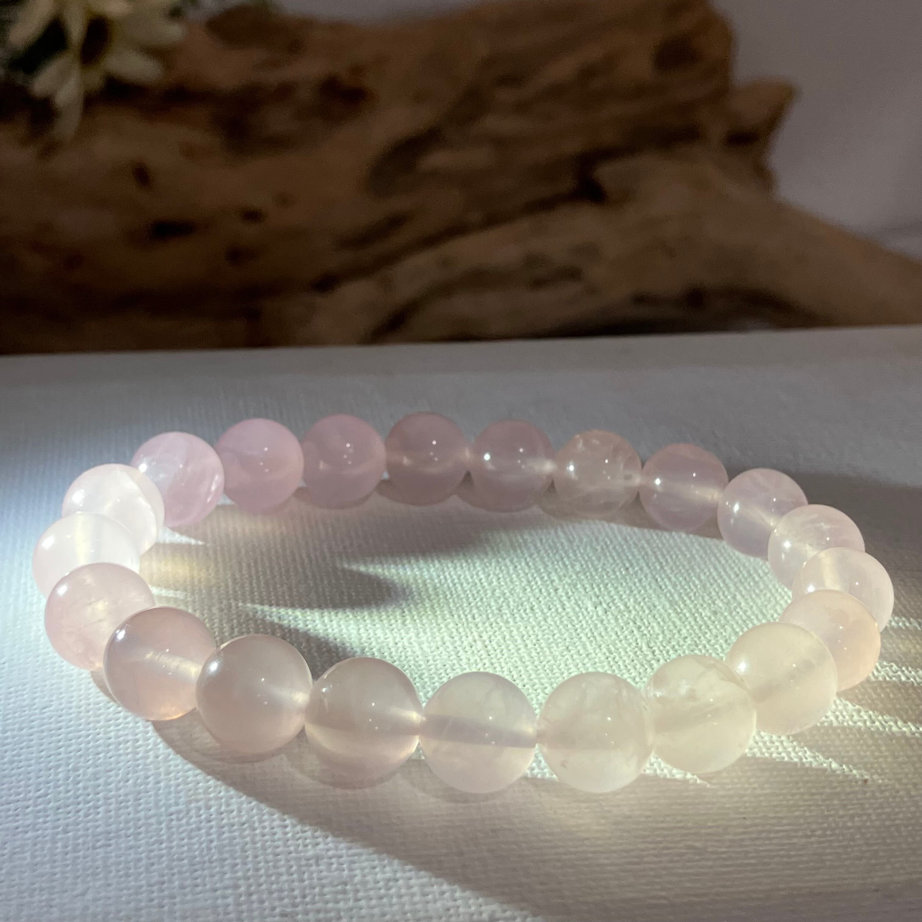 ◎自社研磨☆ブラジル産の原石から天然無処理 ローズクォーツ2Tランク 10mmブレス ¥8,500