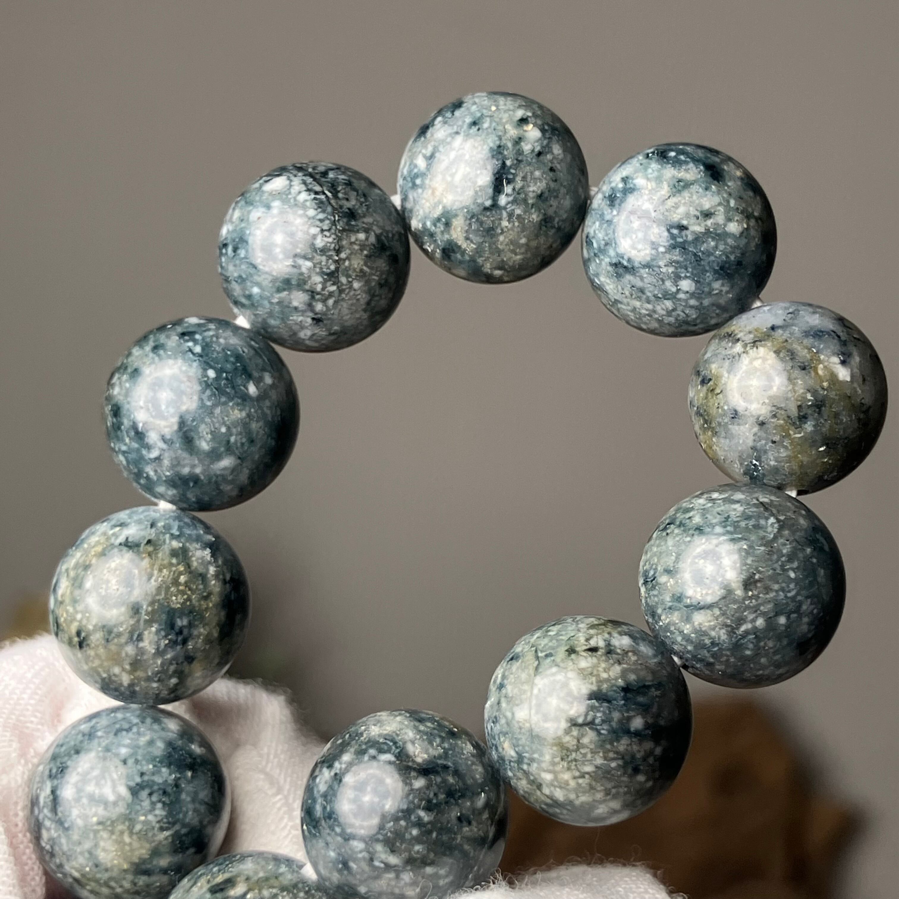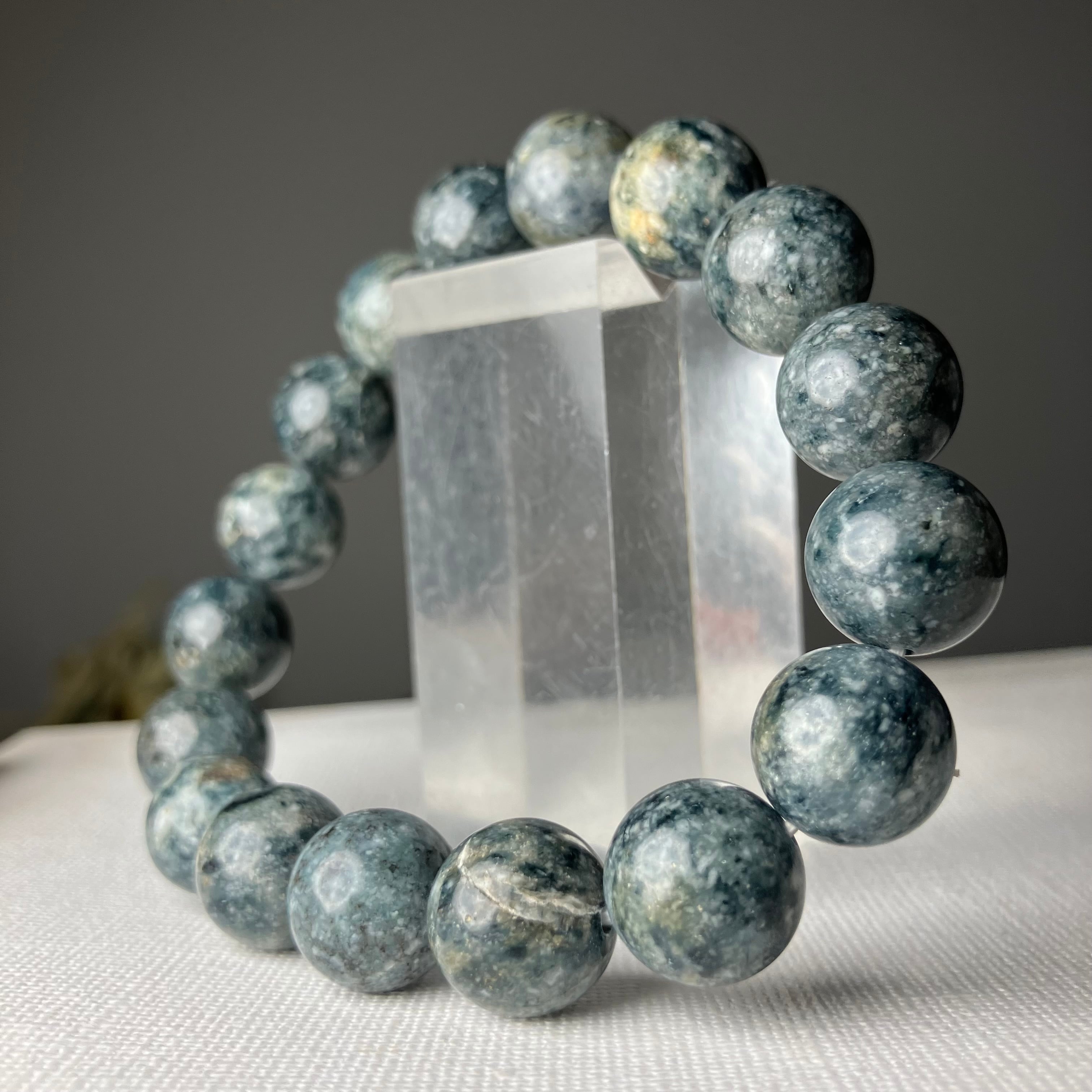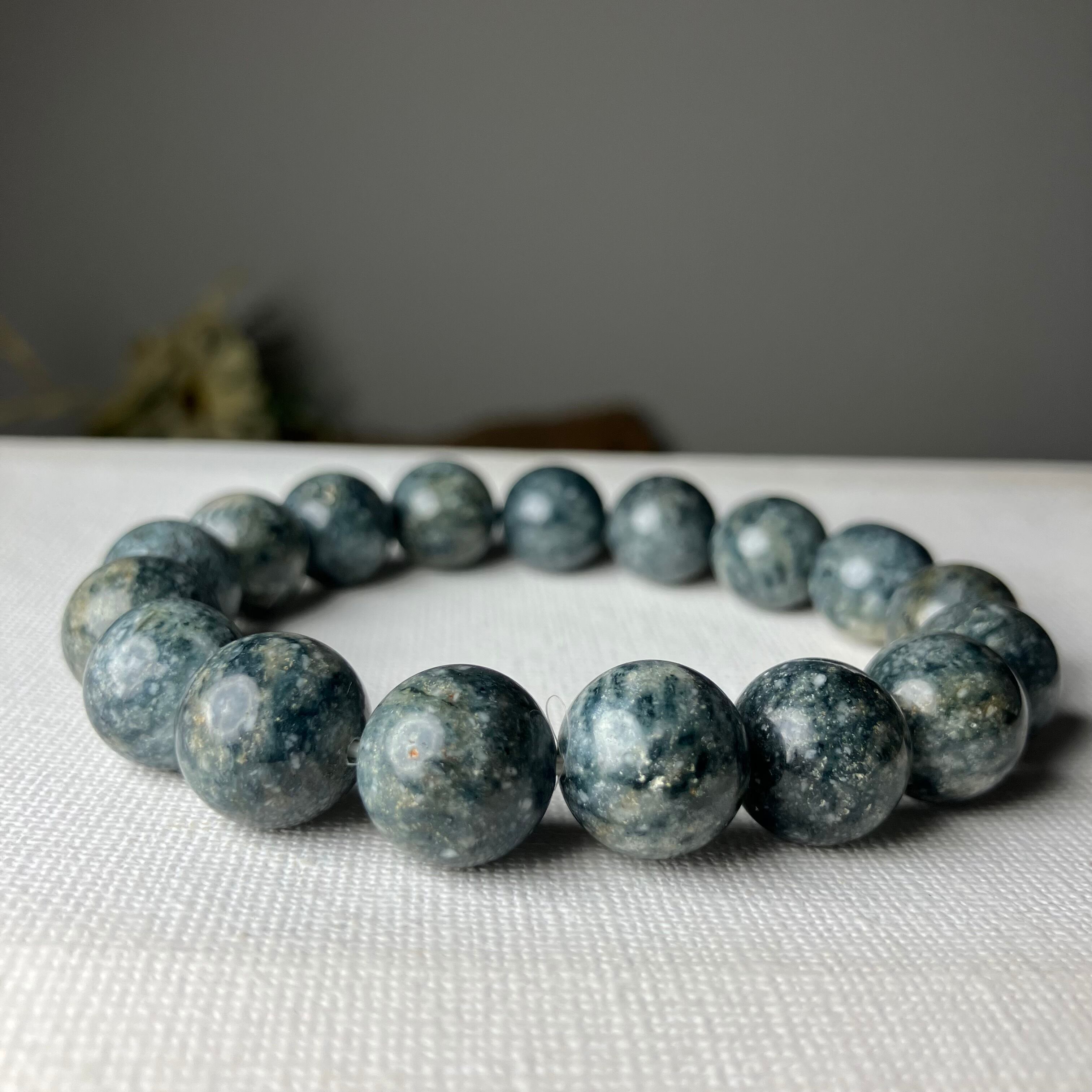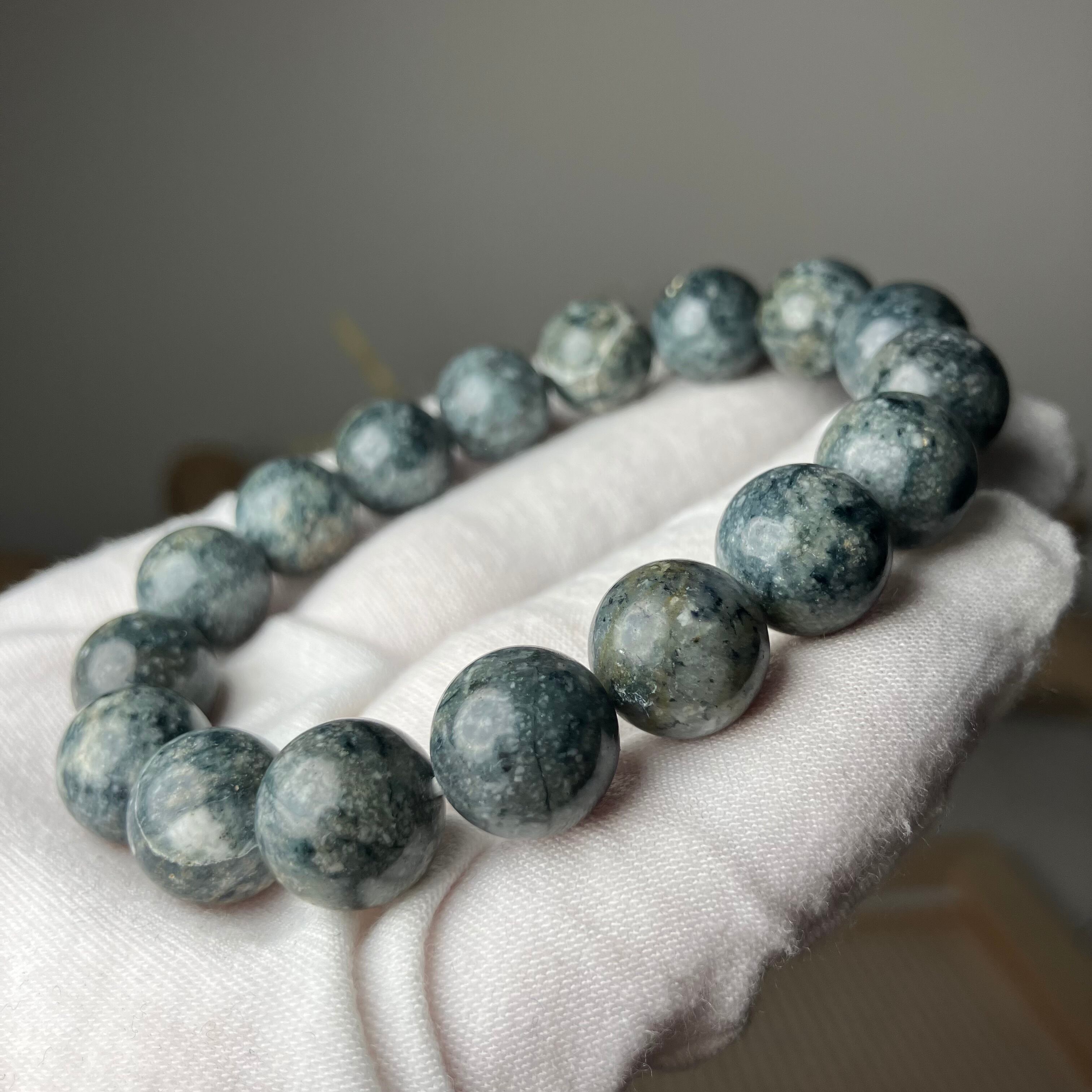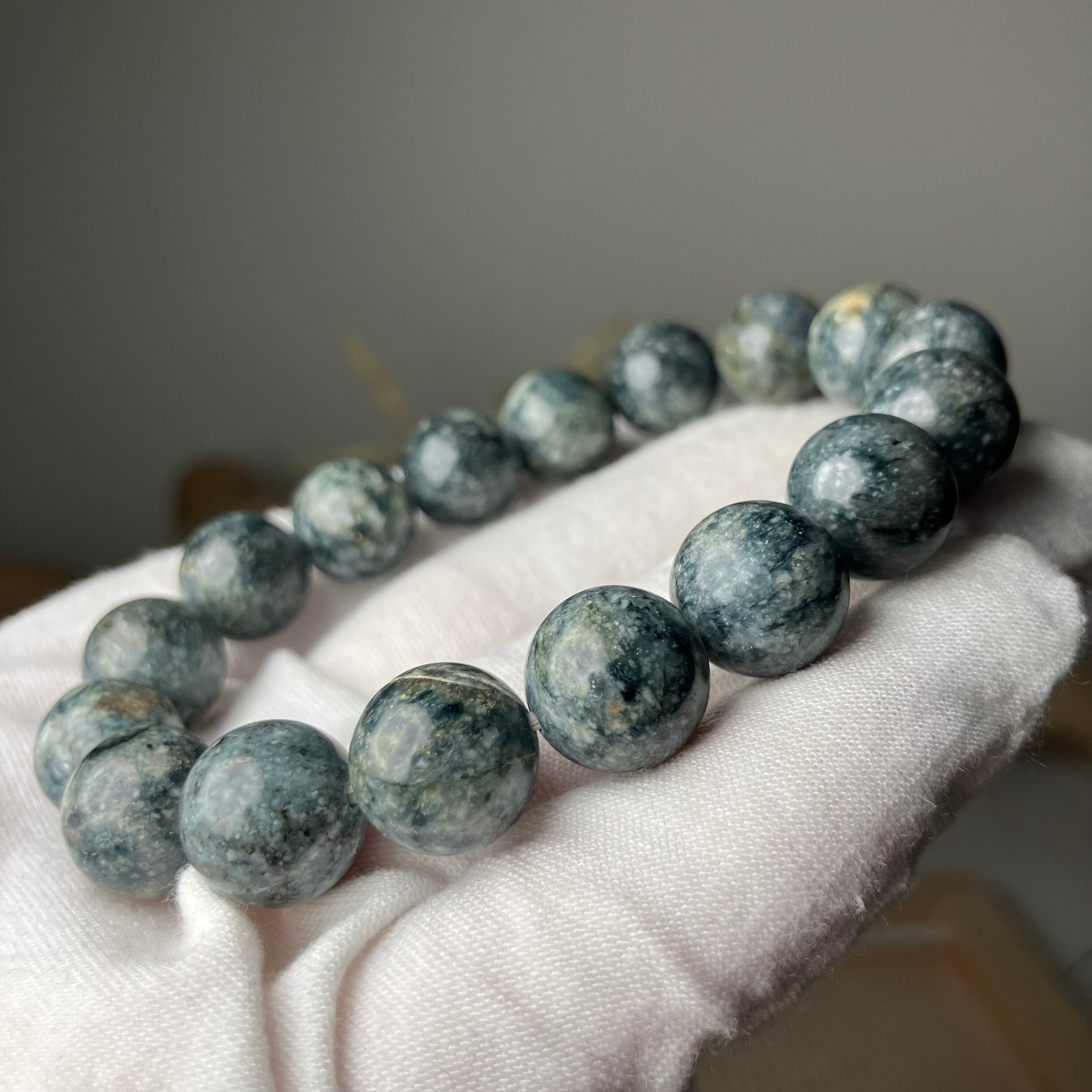 ☆この度もライブ配信にお付き合いくださり誠にありがとうございます♬自社研磨でお作りした天然無処理の個性的な青色サトリアイトをありがとうございます♡是非お持ちのブレスに合わせて楽しみながら育ててくださいね♡サイズお直ししお届けさせていただきます♡この度も誠にありがとうございます♫