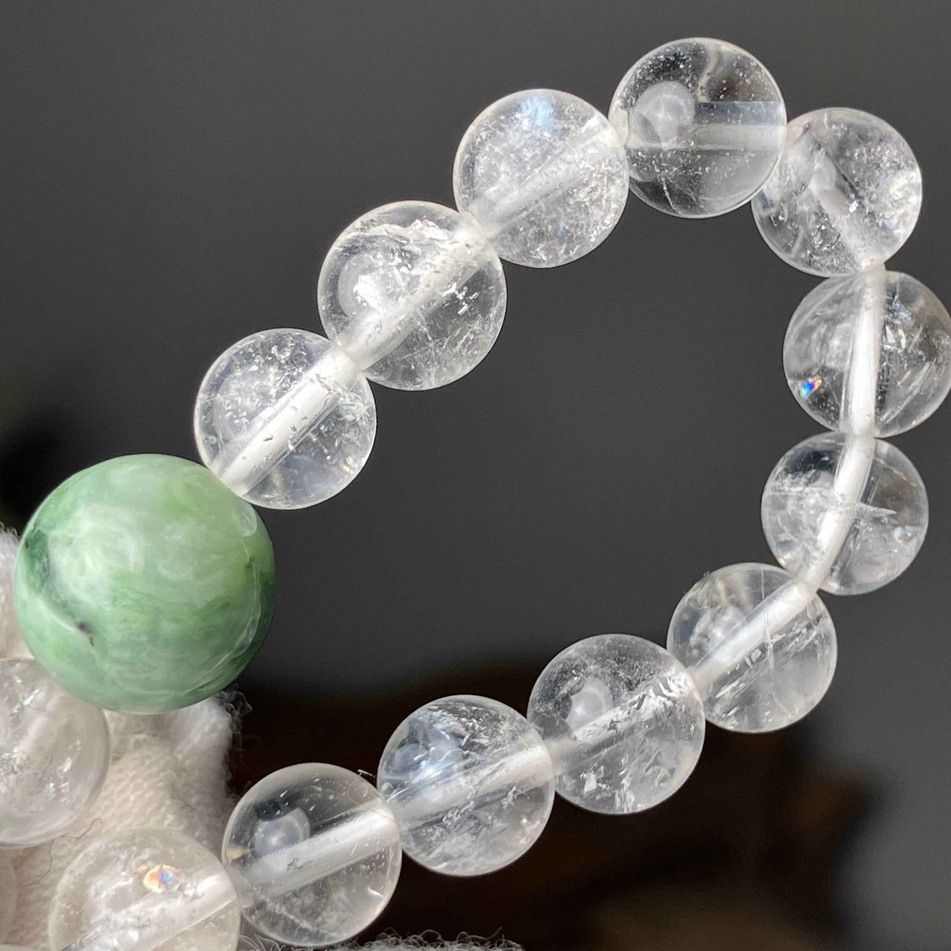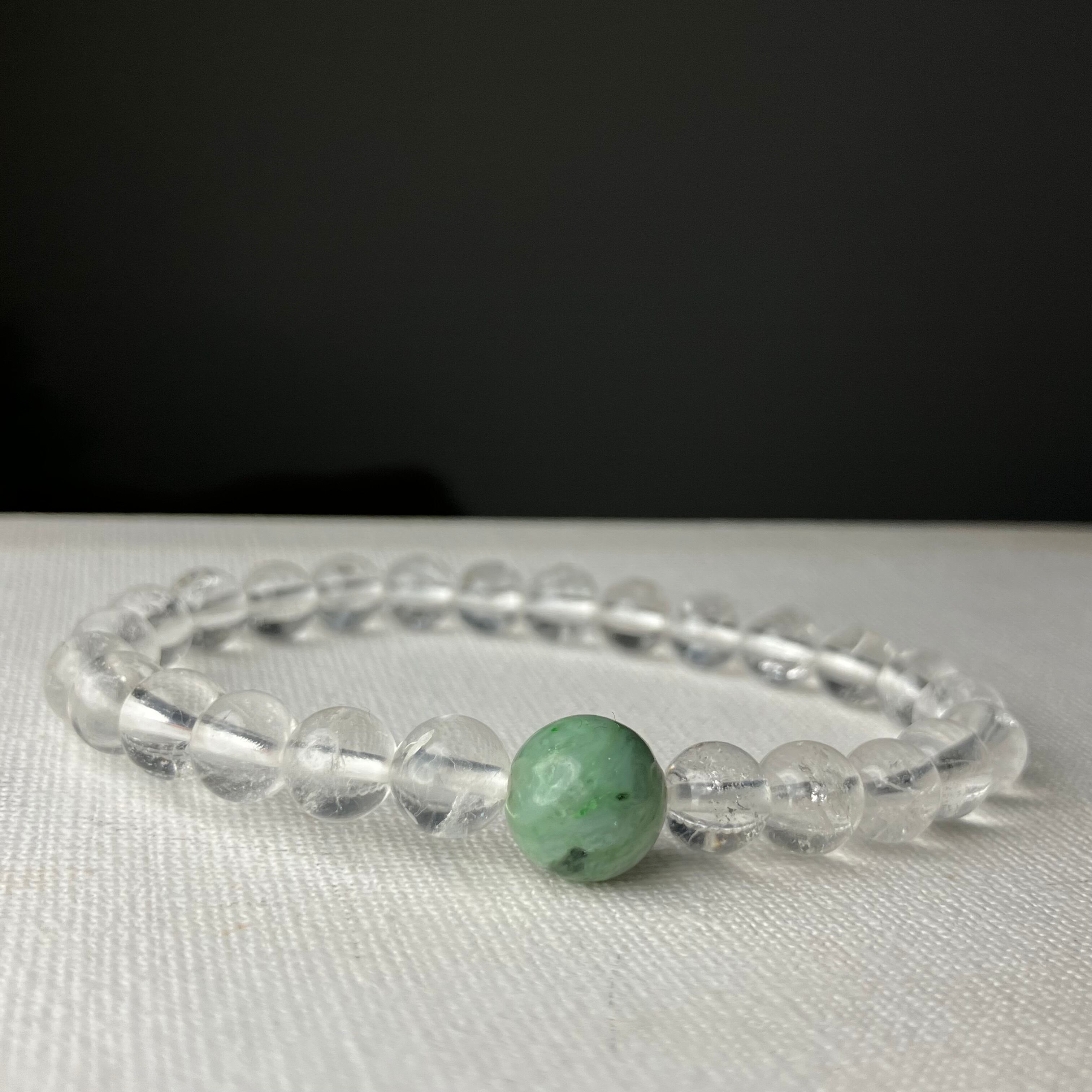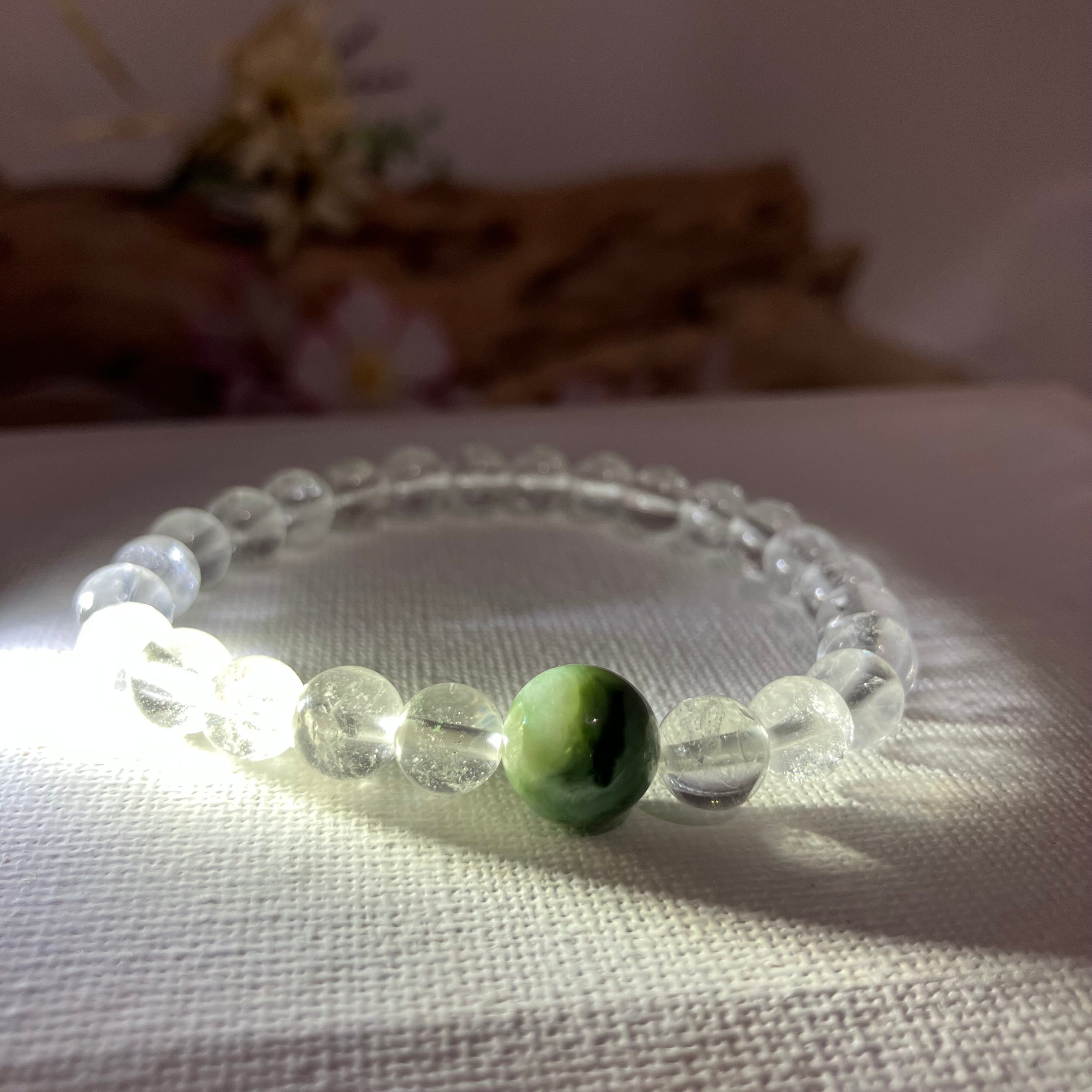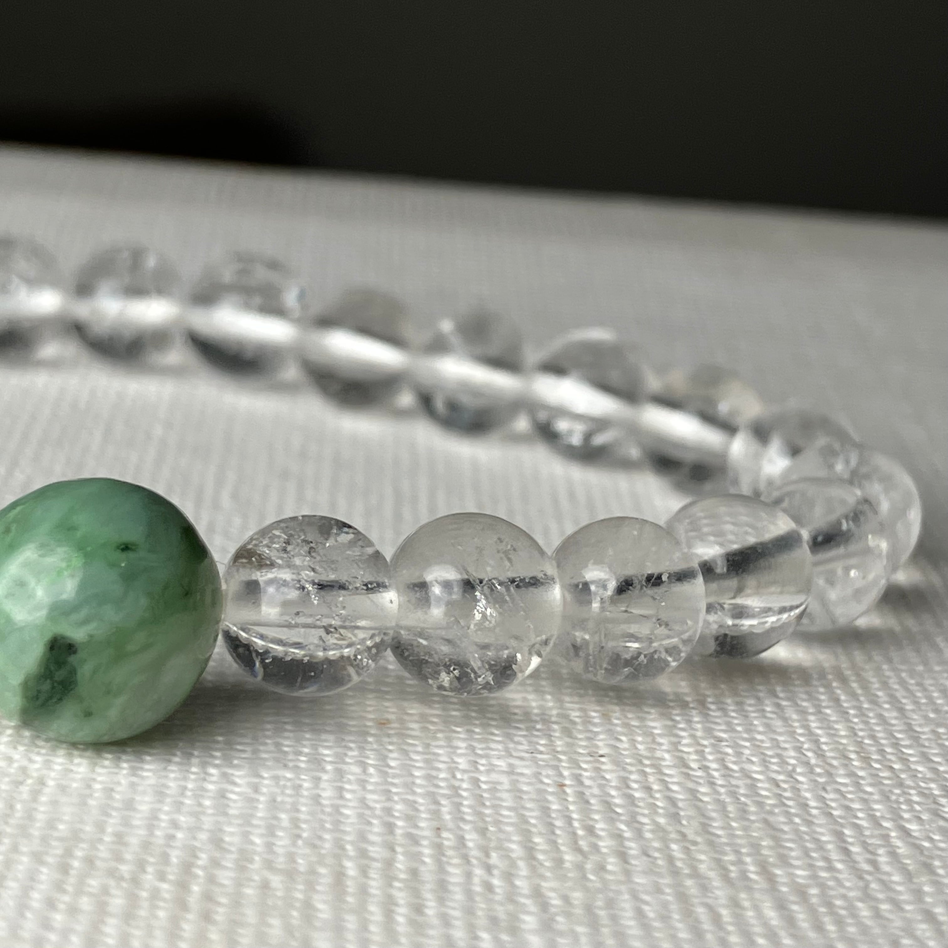 (自社研磨 日高町産/日高ヒスイ10mm&仕入れヒマラヤ水晶7mm)