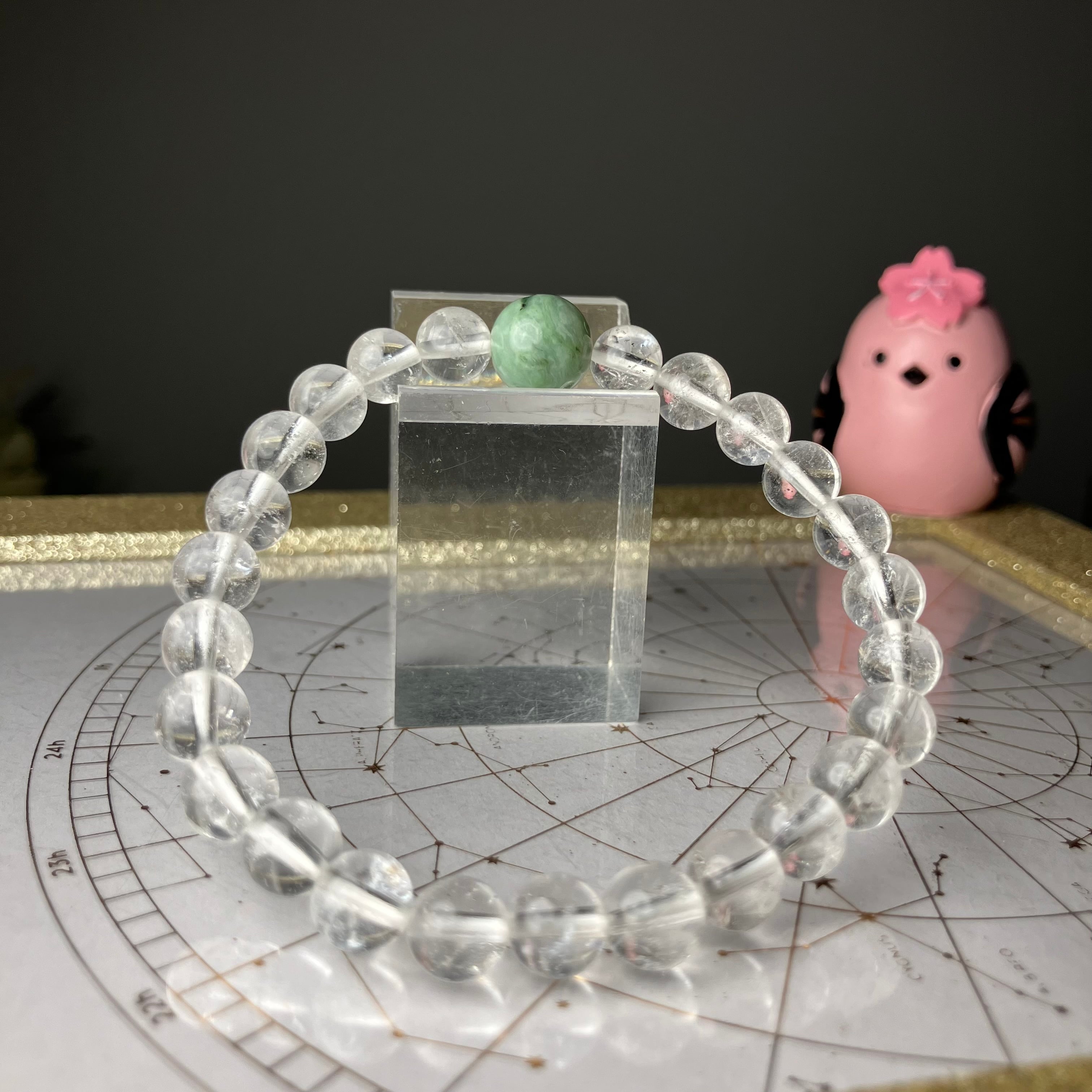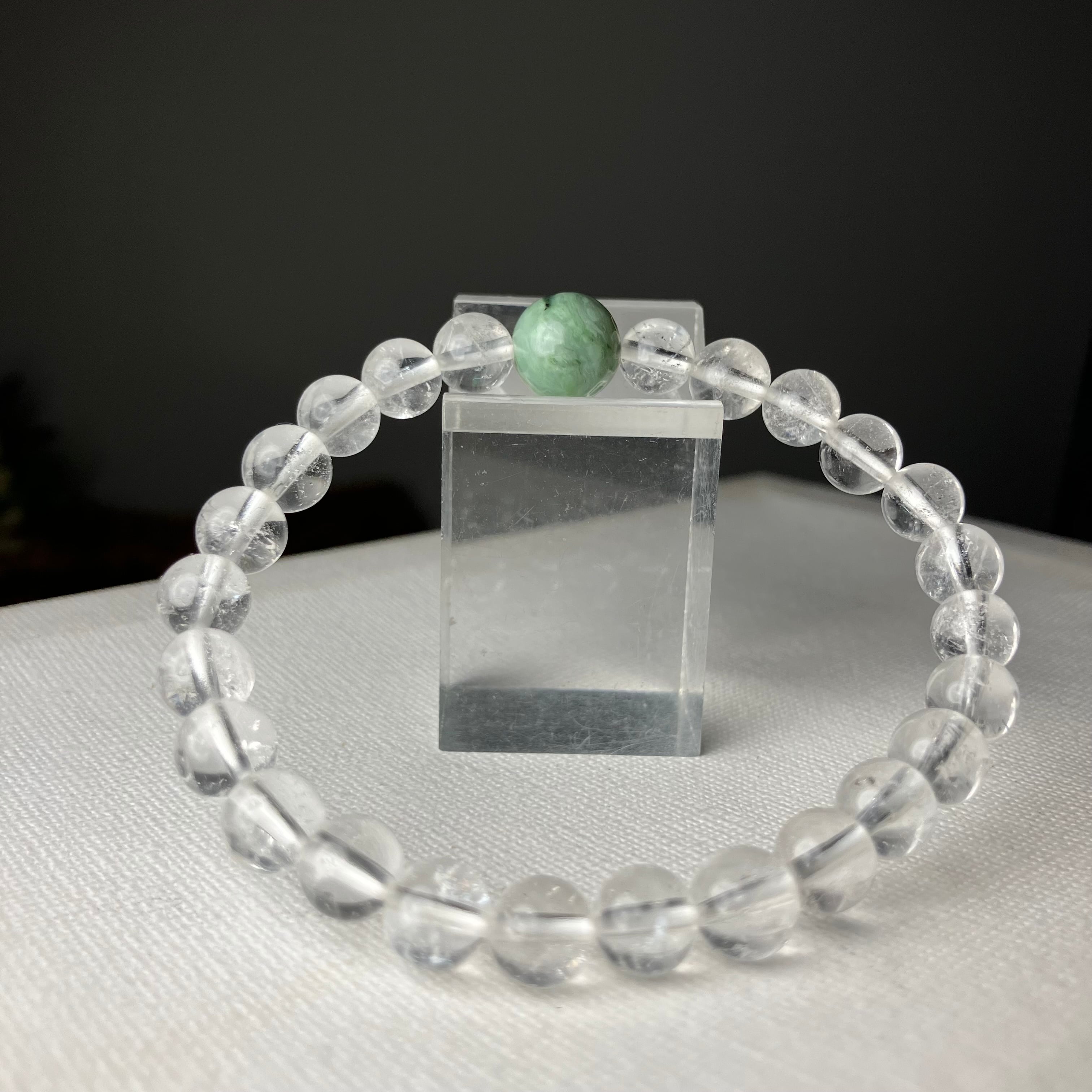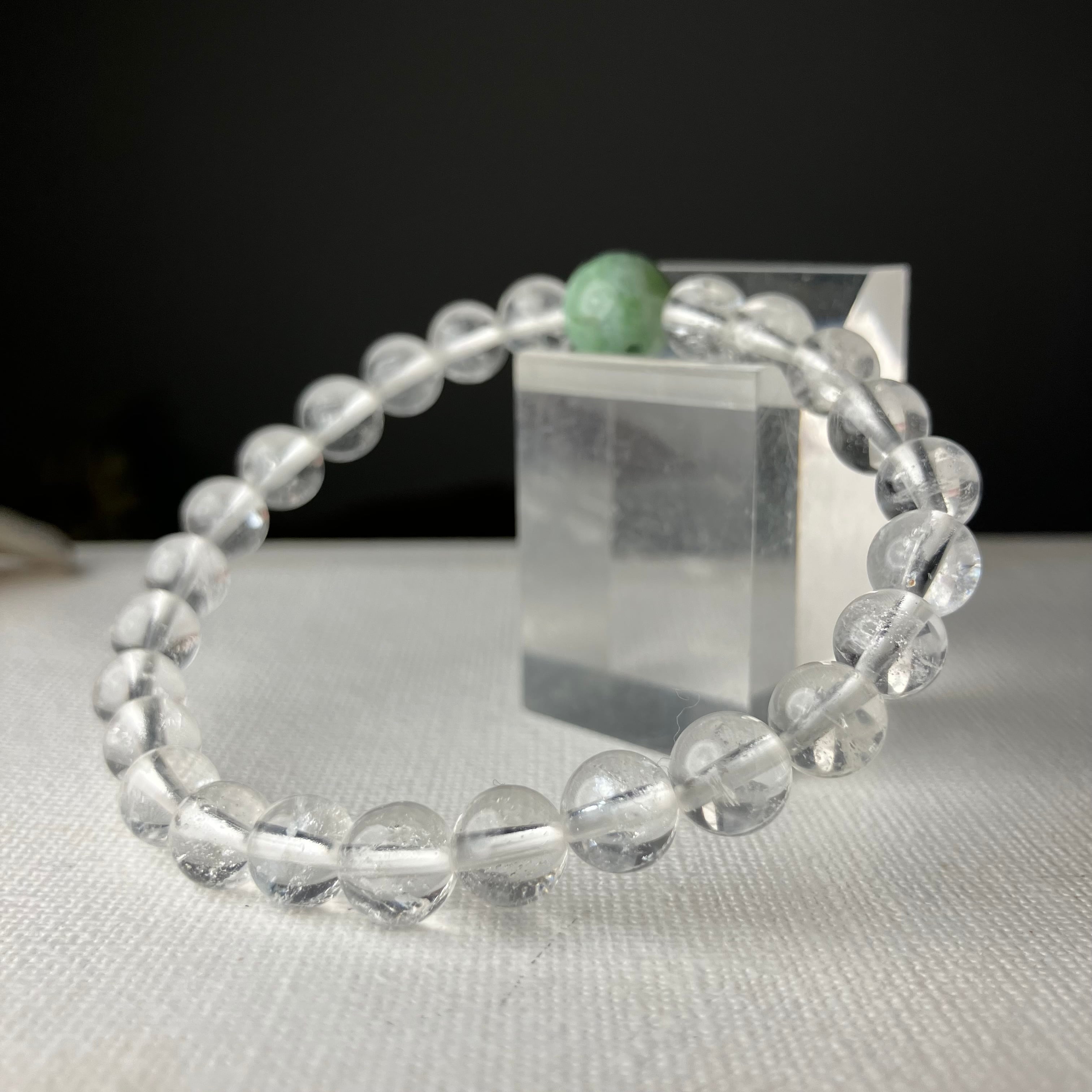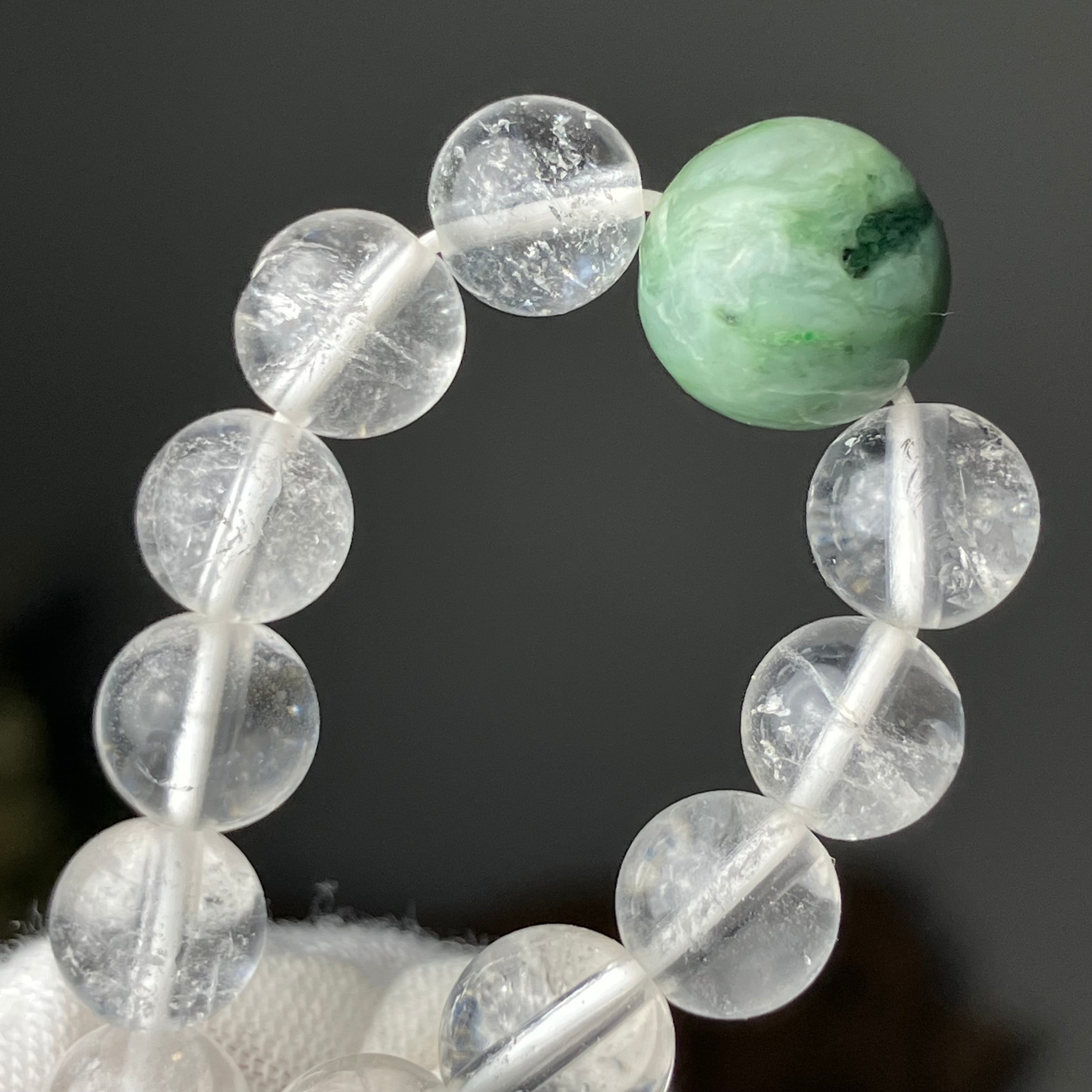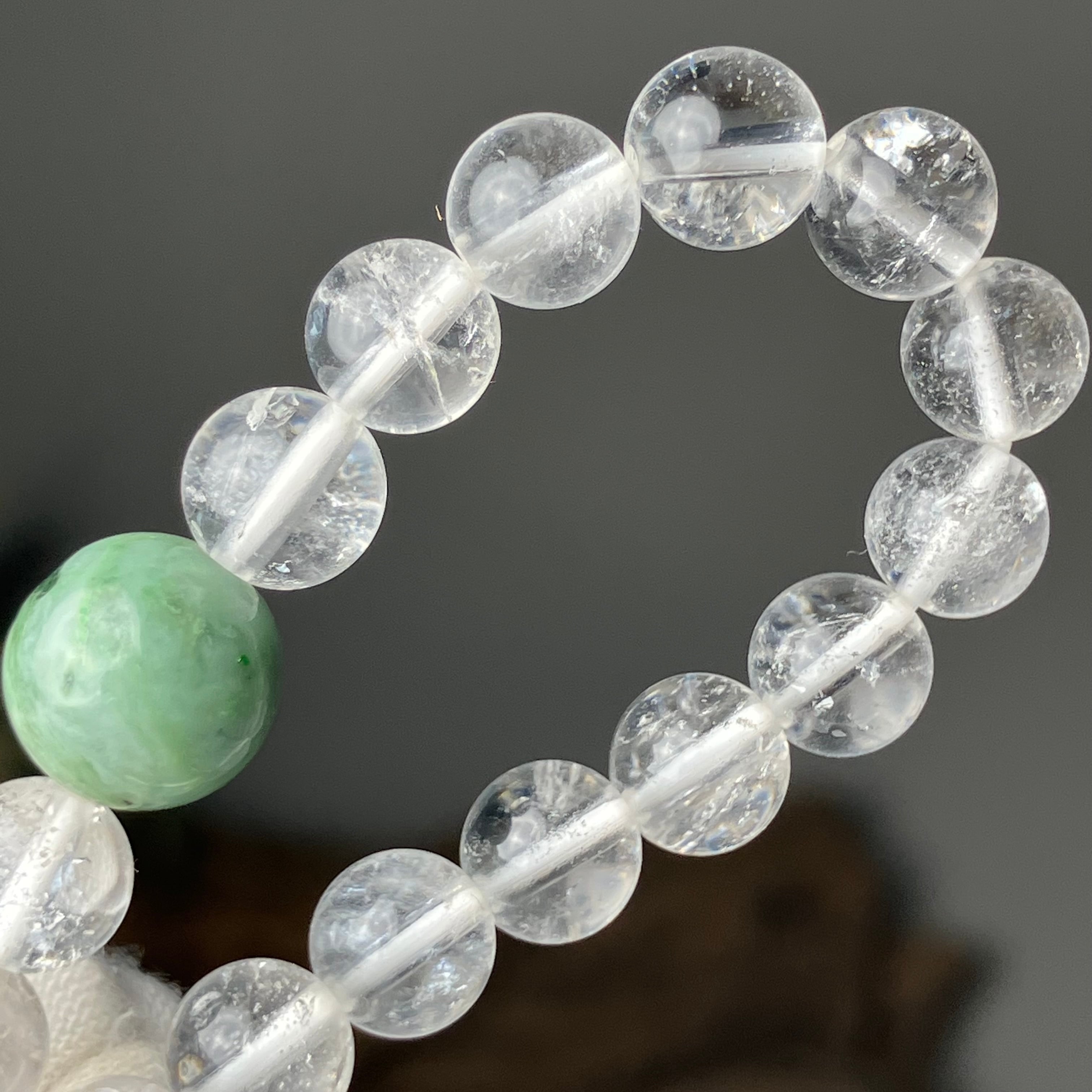 (自社研磨 日高町産/日高ヒスイ10mm&仕入れヒマラヤ水晶7mm)