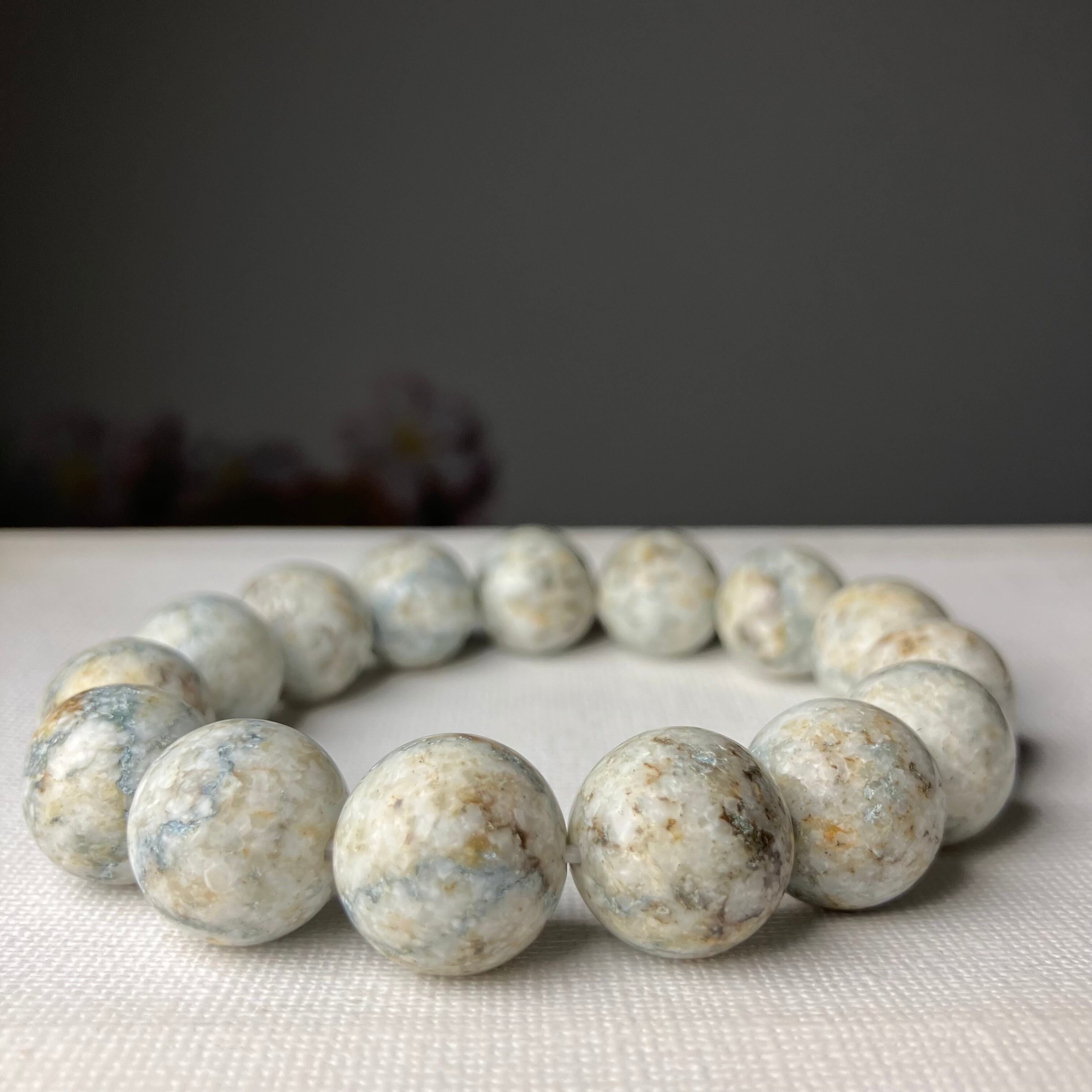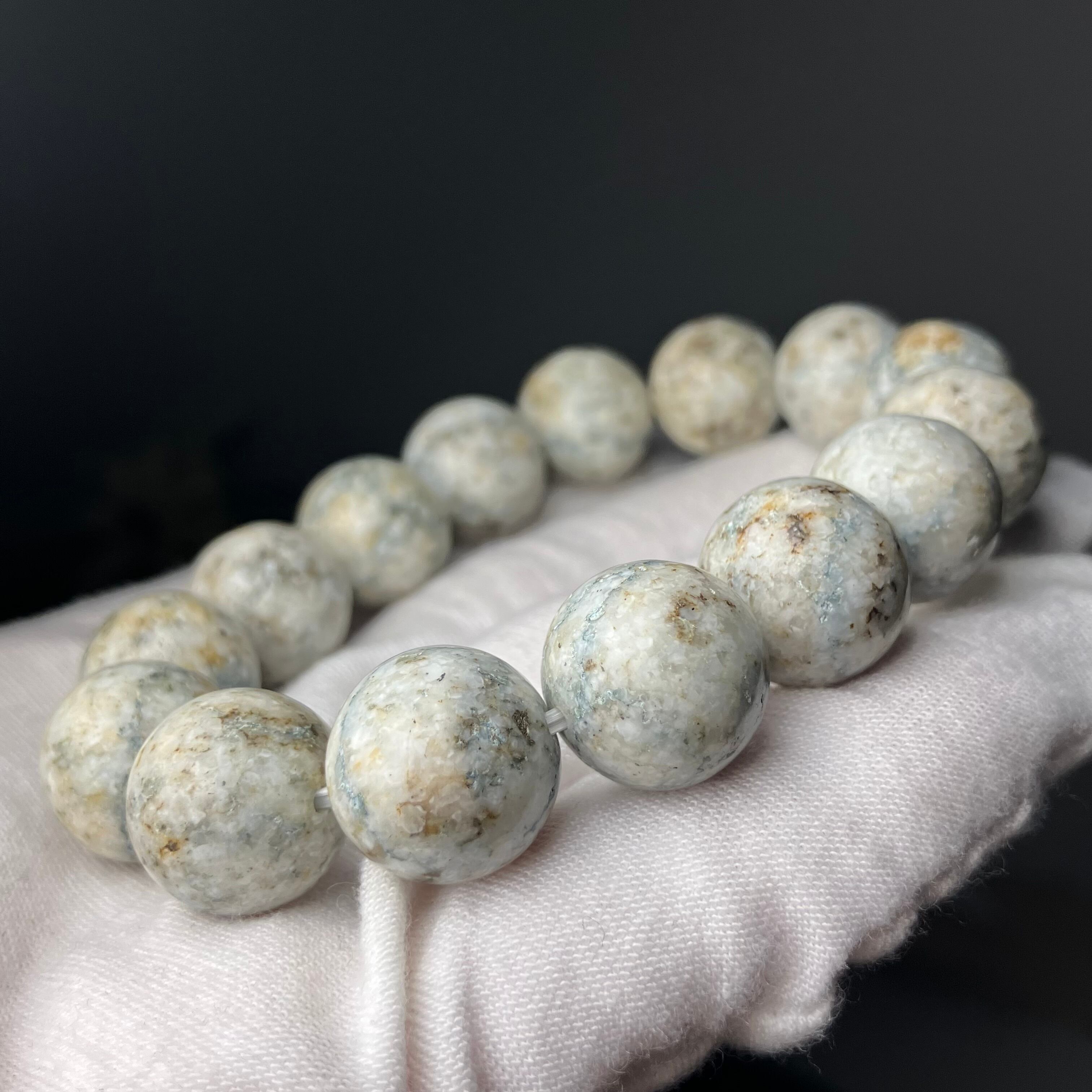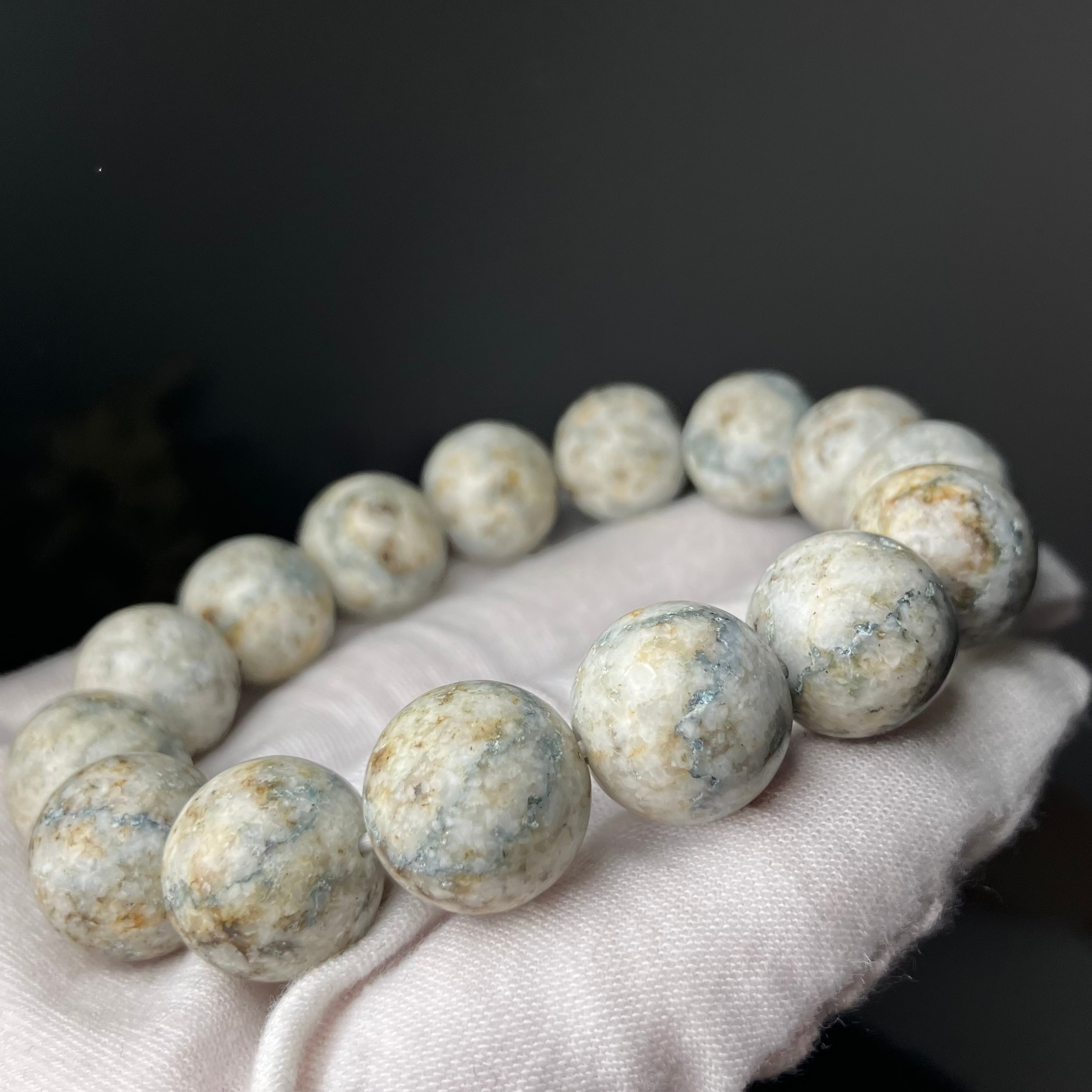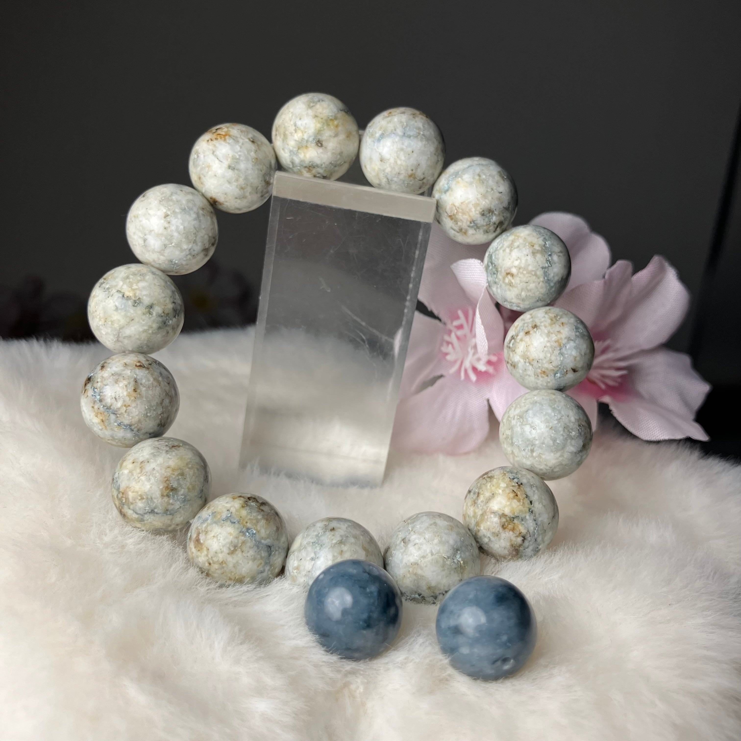 ☆この度もライブ配信にお付き合いくださり誠にありがとうございます♬珍しい表情のサトリアイトブレスと、青みが美しいサトリアイトのビーズをありがとうございます♡このブレスで素敵な毎日を楽しんでいただけるようお作りさせていただきお届けいたしますね♡この度はお時間を頂戴いたしましたこと心より感謝申し上げます。誠にありがとうございます♫