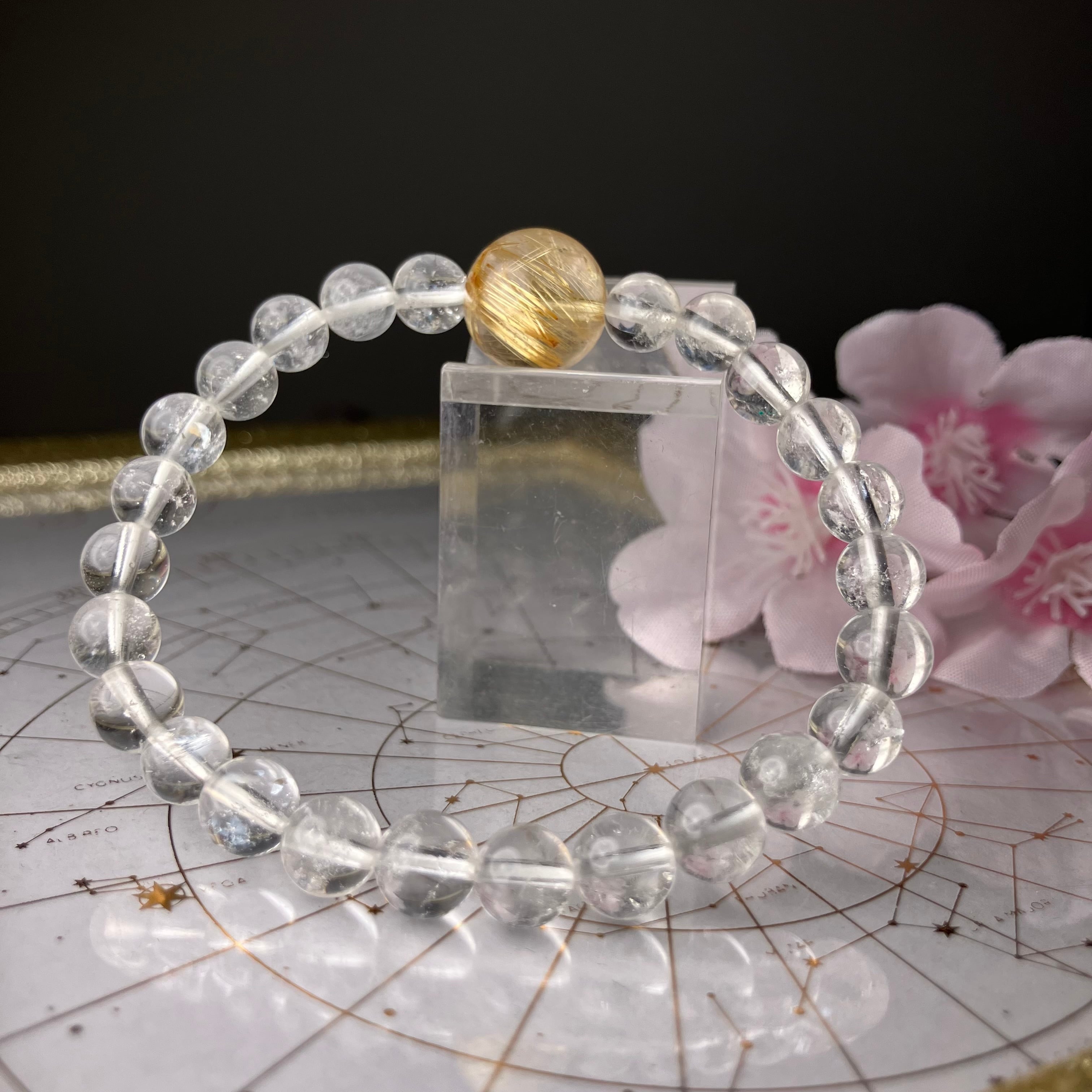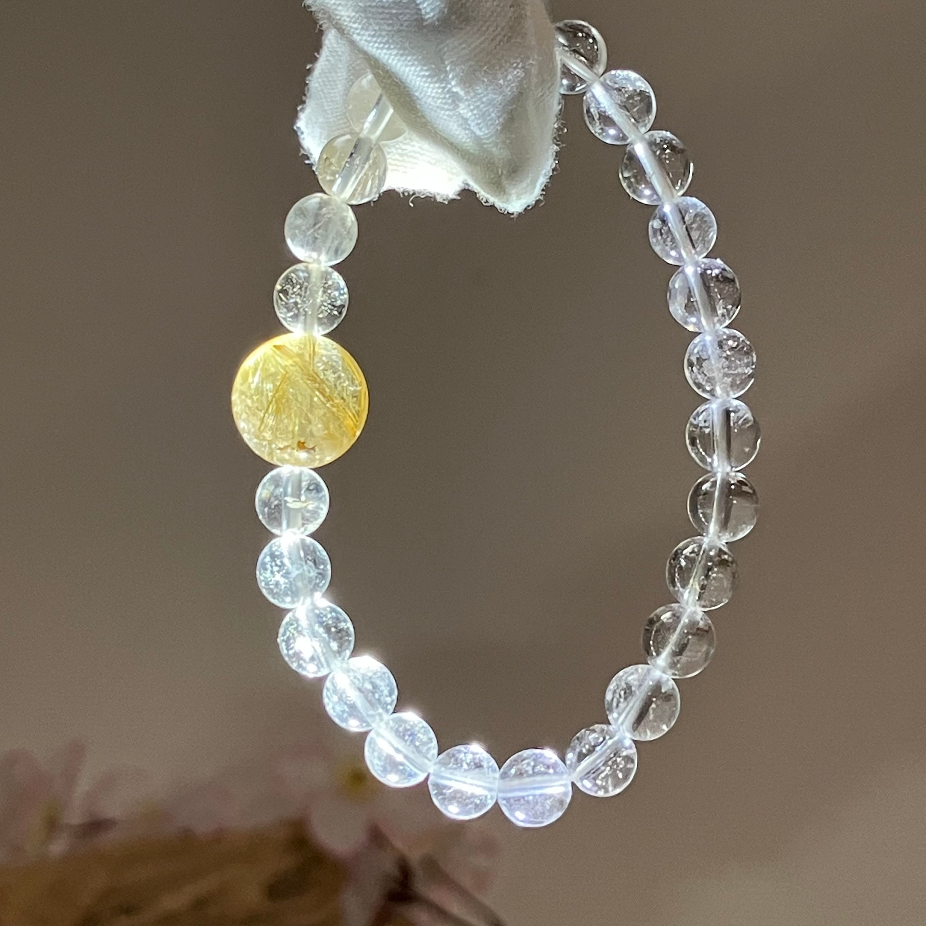 (ルチルクォーツ13mm&ヒマラヤ産水晶7mm)