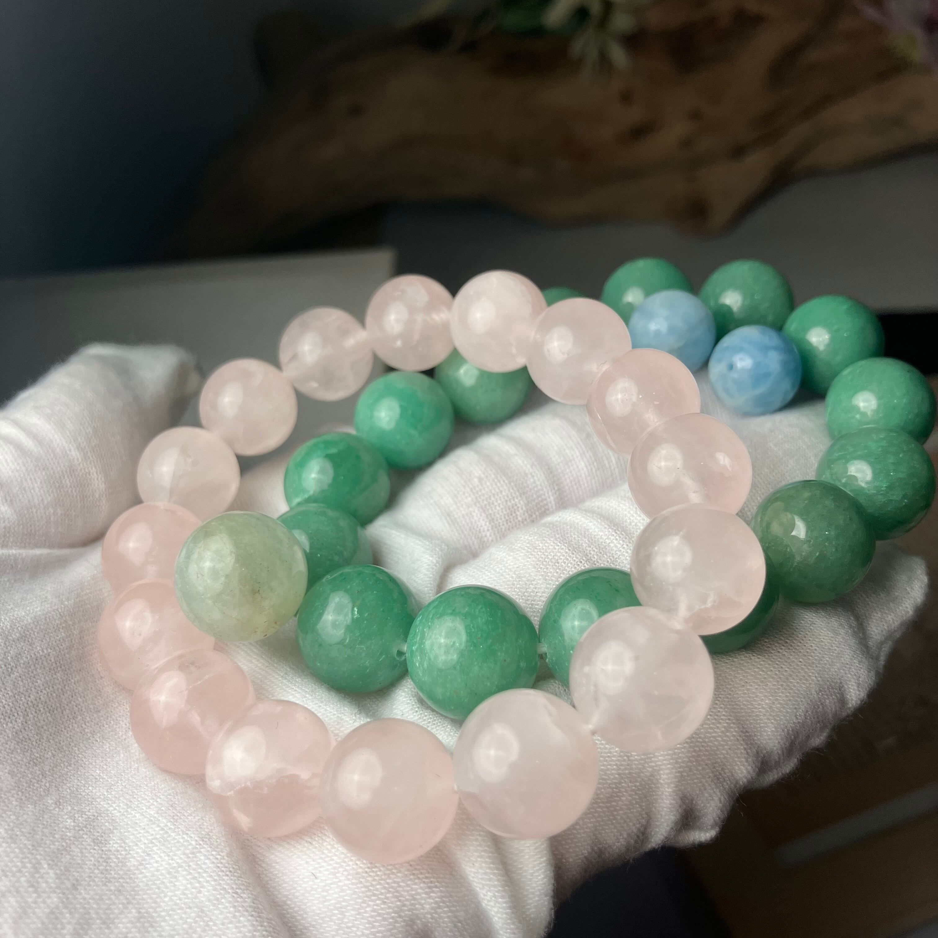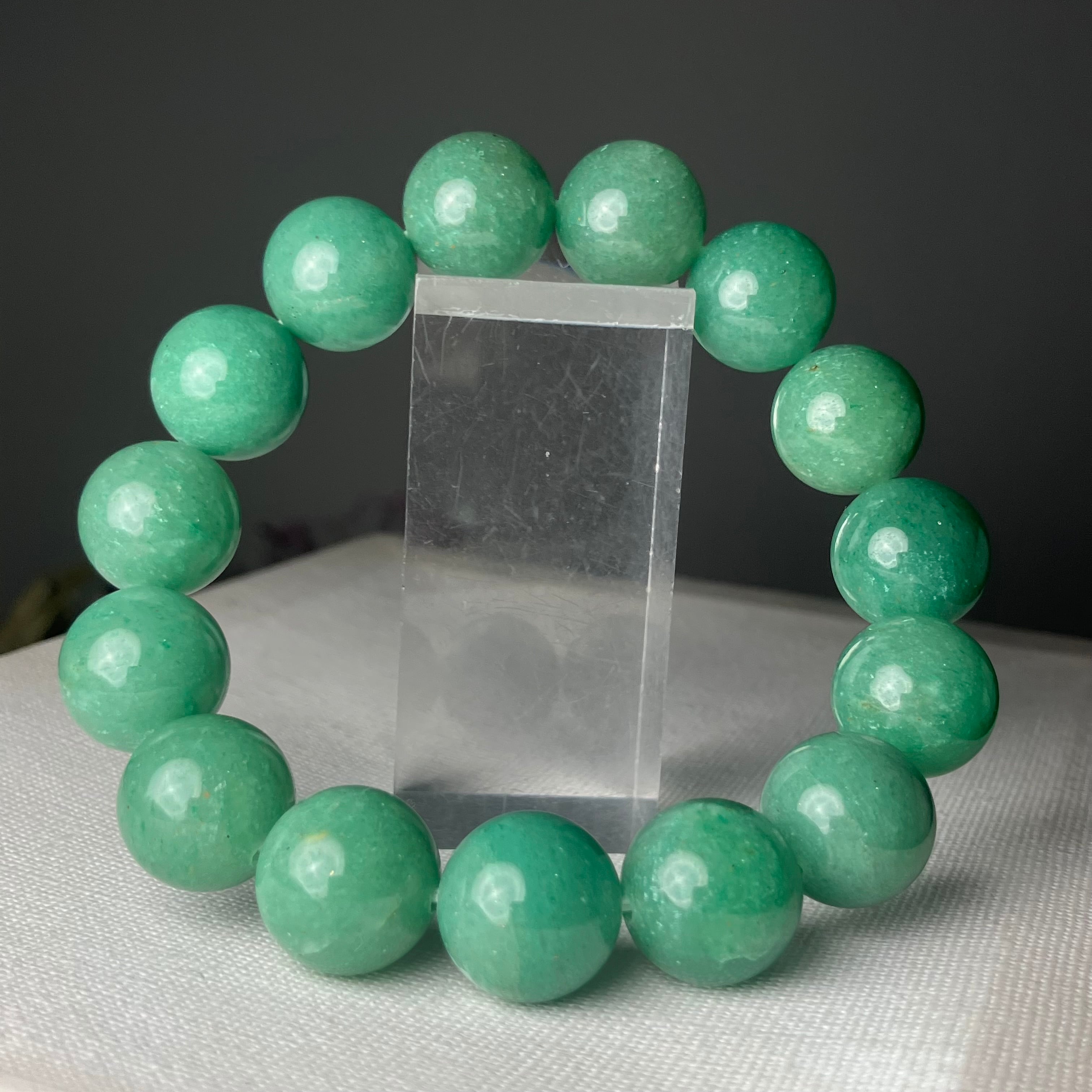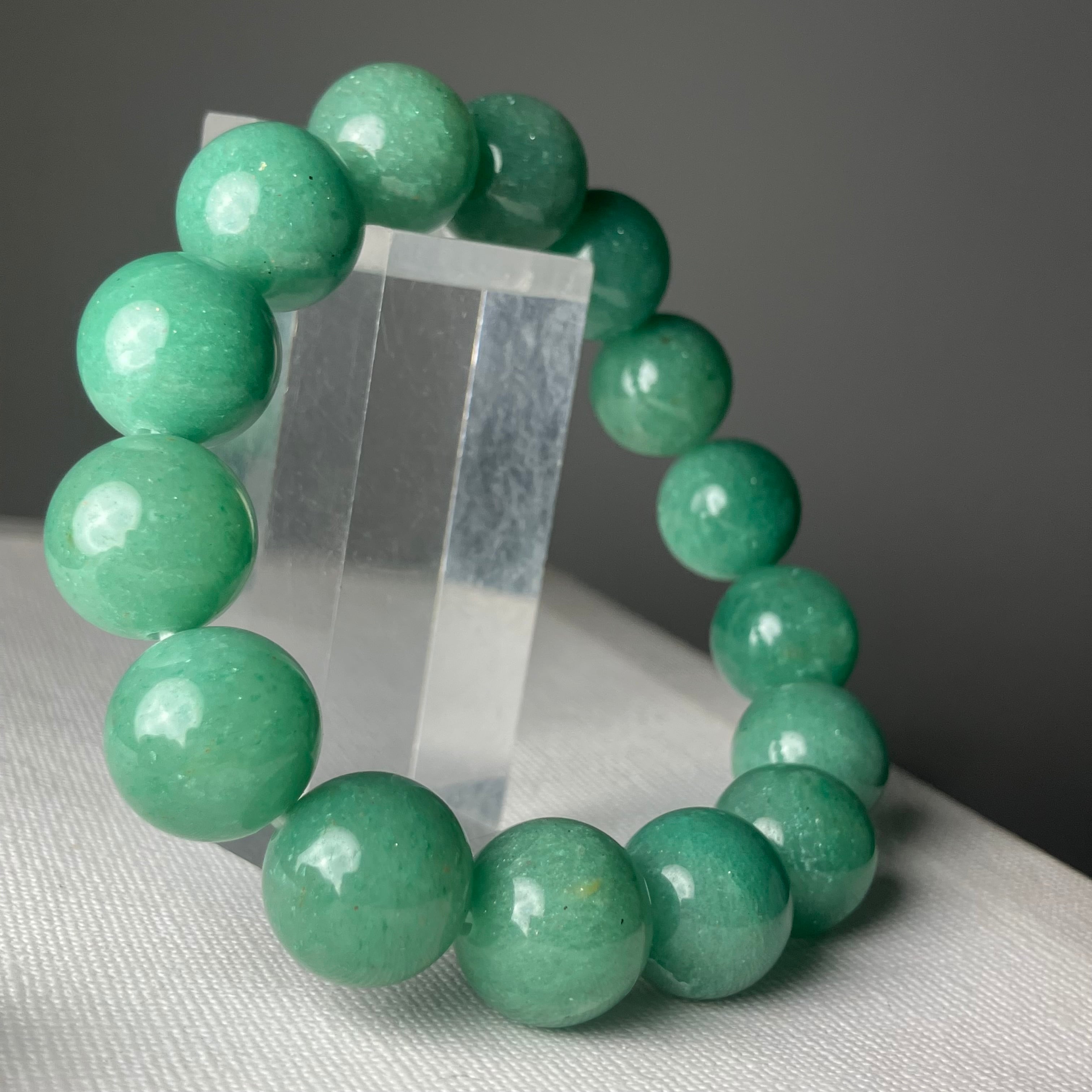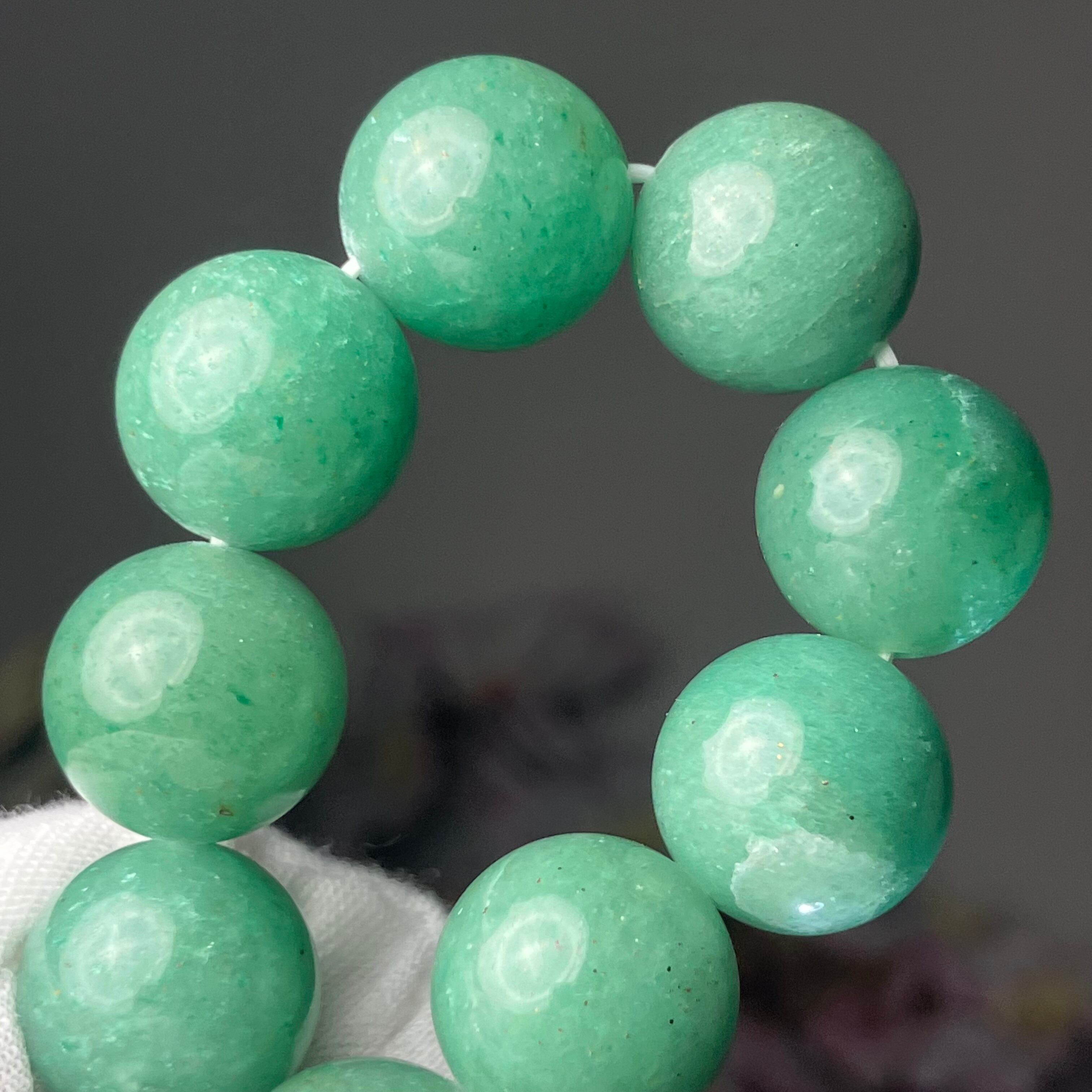 ◎インド産の原石から天然無処理★グリーンアベンチュリン 2Tランク 14mmブレス ¥19,354