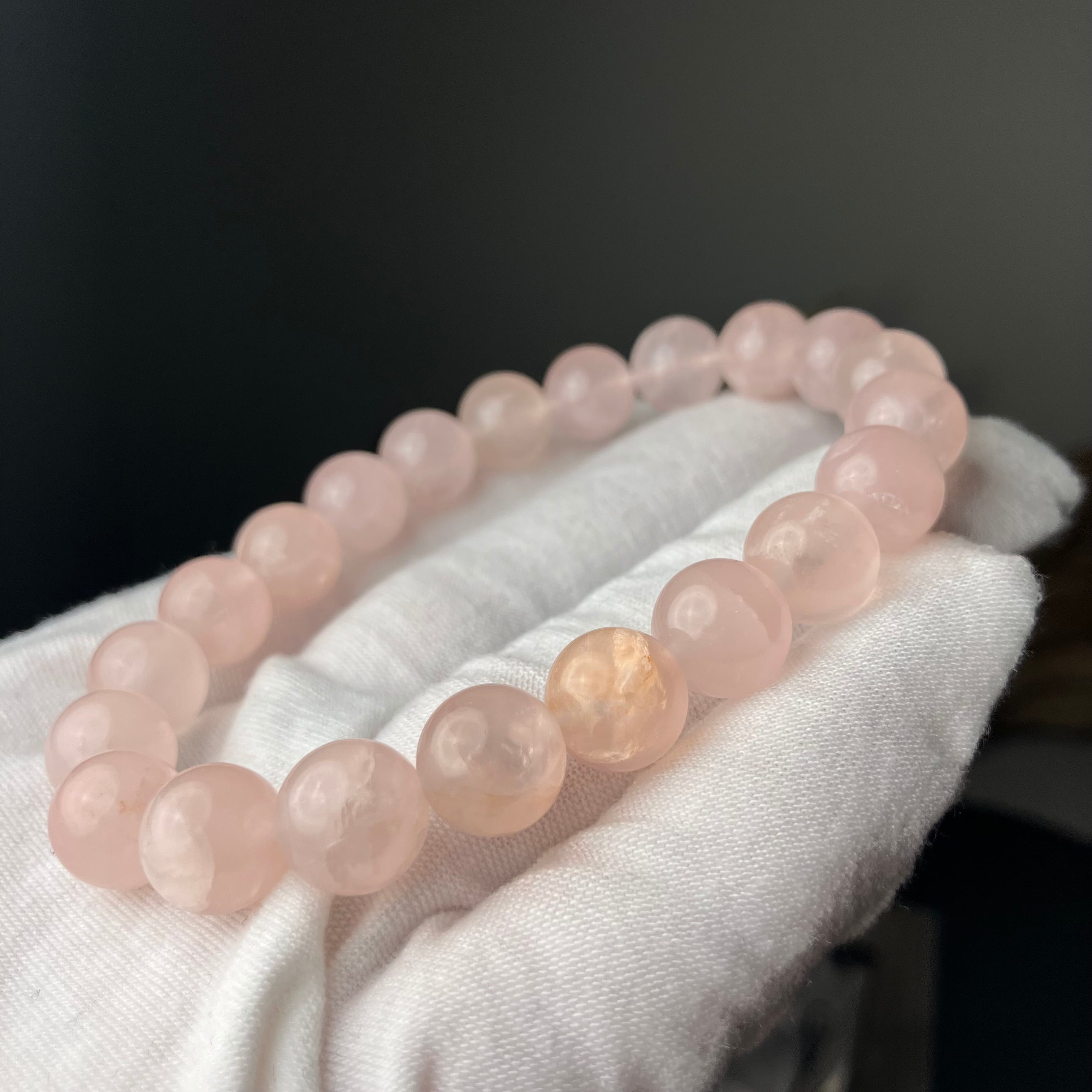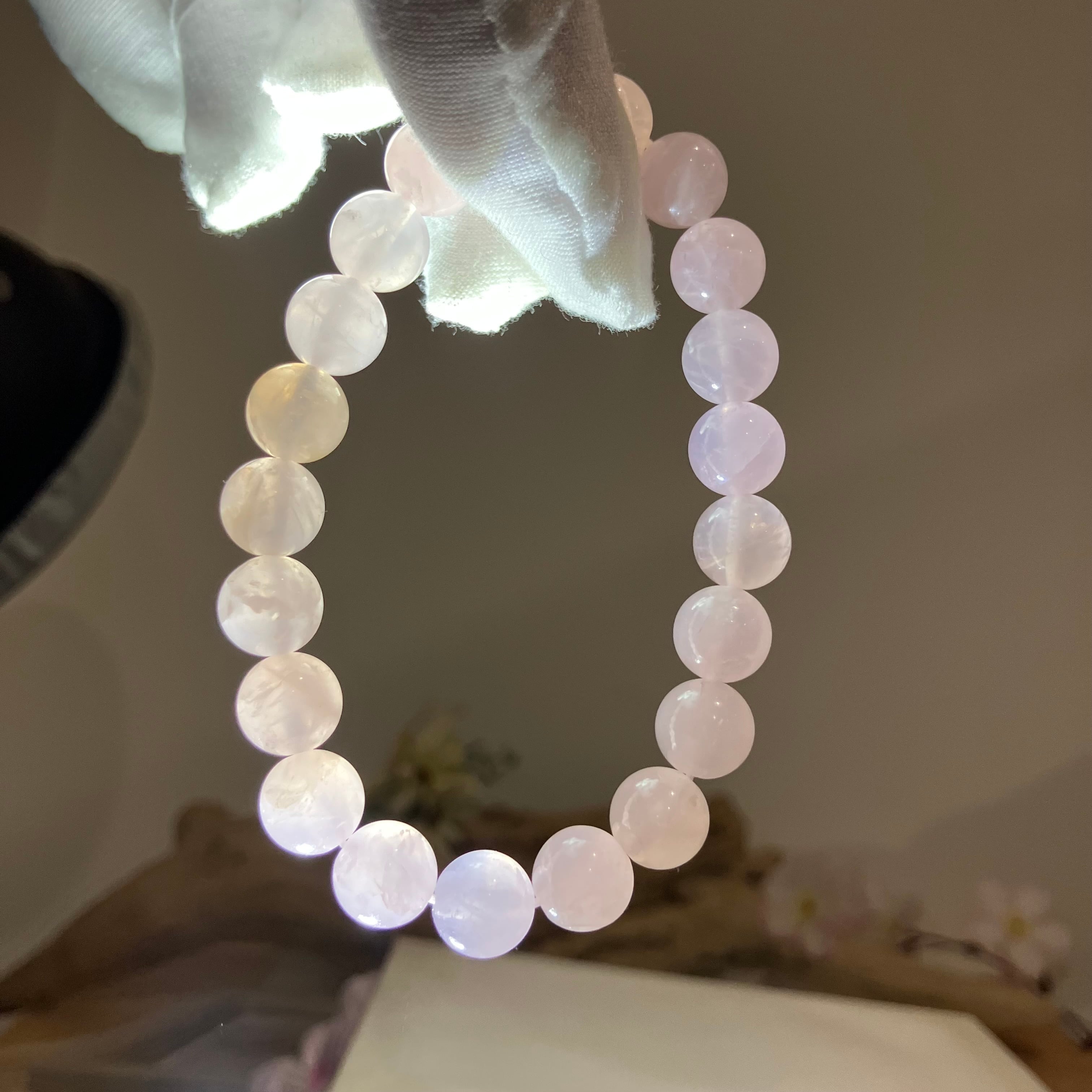 ◎ブラジル産の原石から天然無処理☆自社研磨ローズクォーツ 2Tランク 10mmブレス ¥8,500