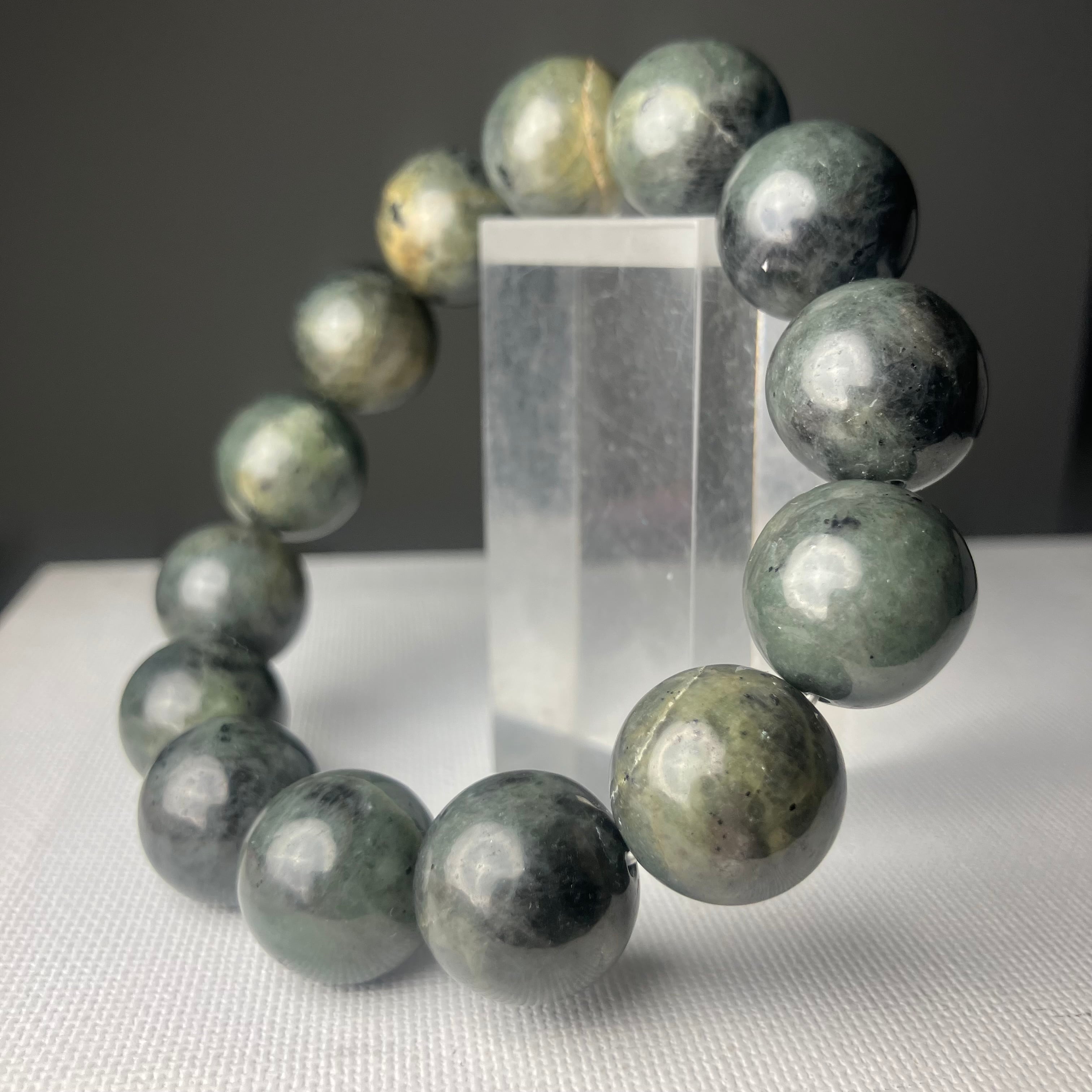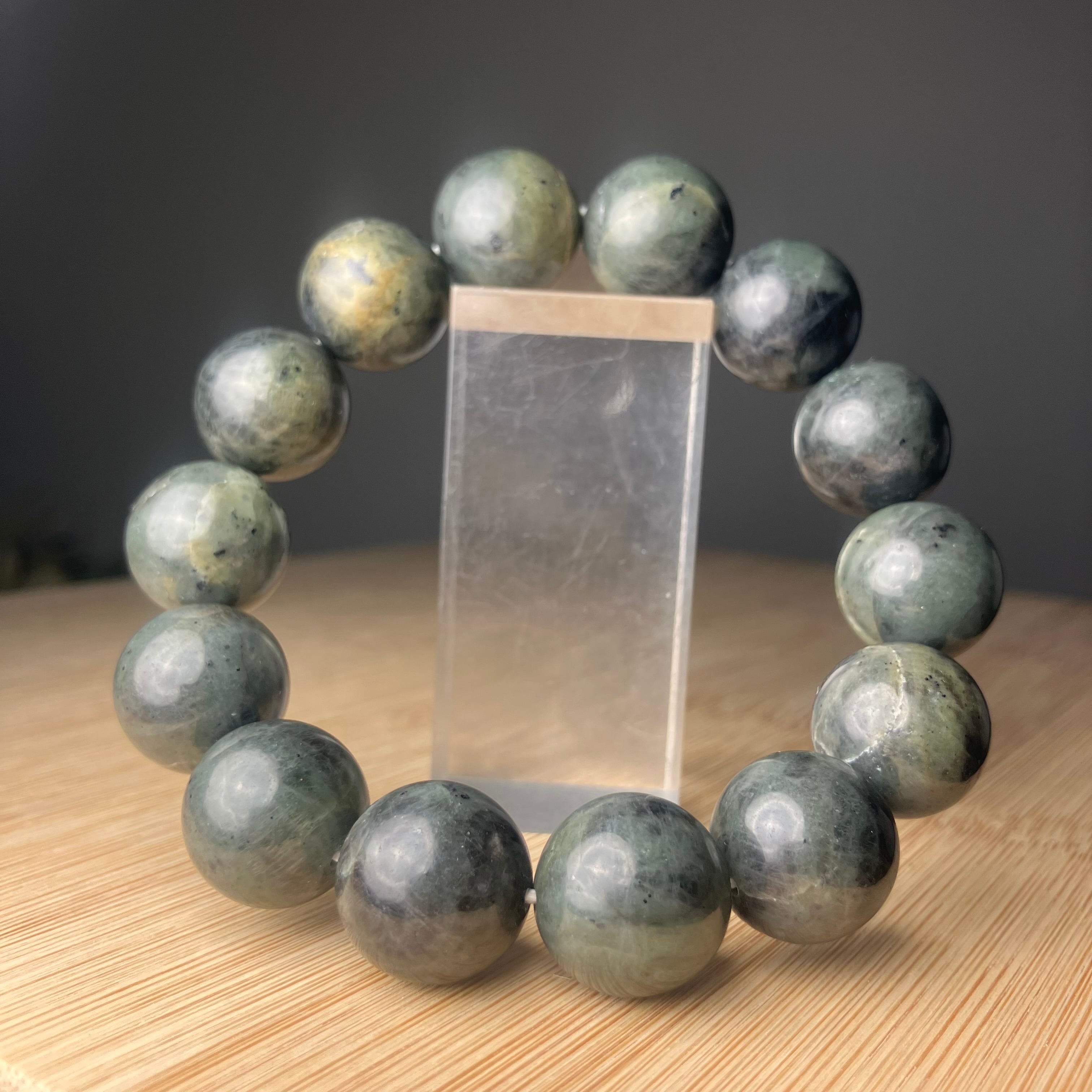◎自社研磨☆様似町産/橄欖岩 15mm 2Tランクブレス ¥27,981